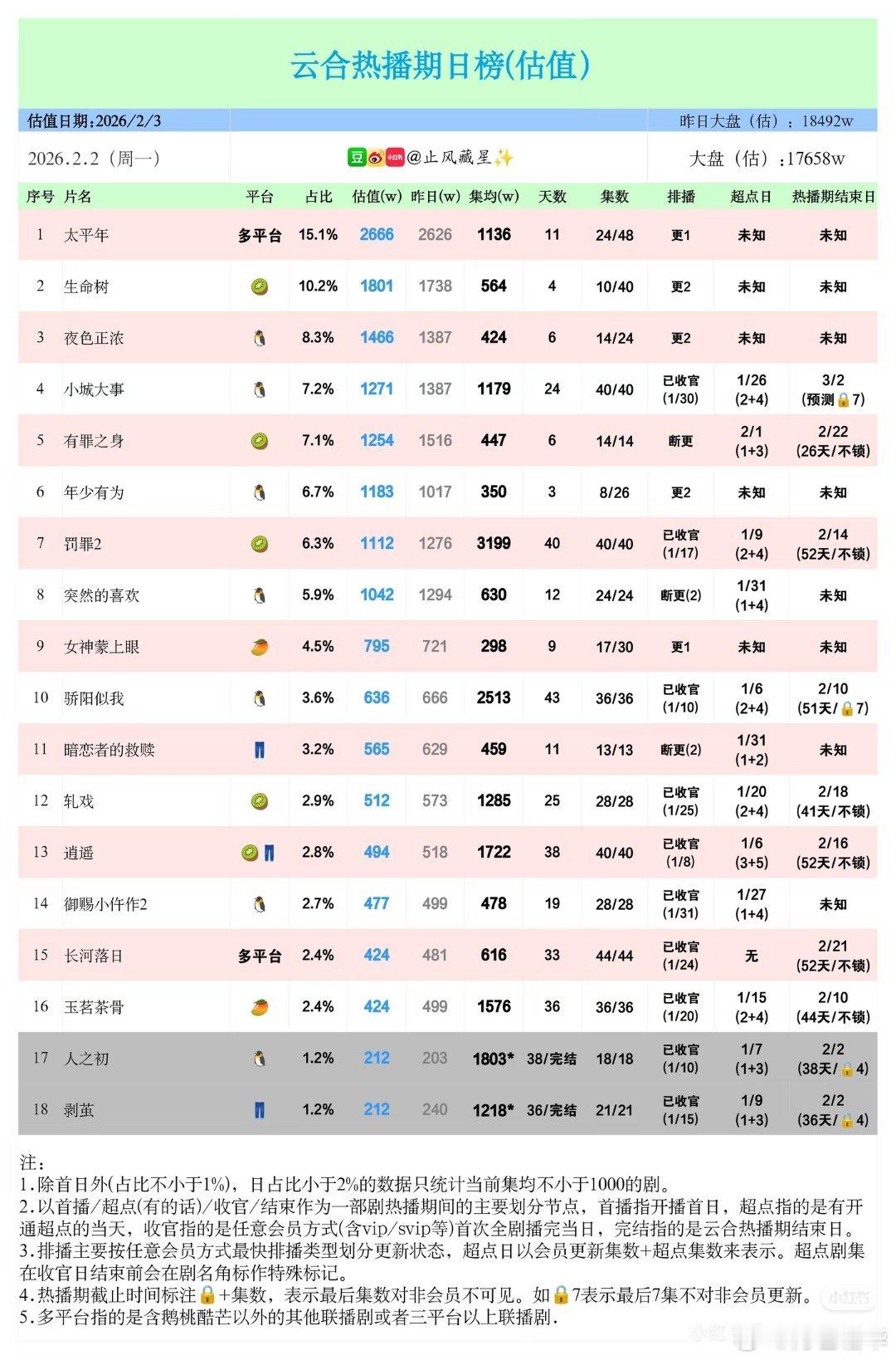 2月2日,罚罪2VIP更新结束第17天,今天排第7,热播期预测还有12天,罚罪,