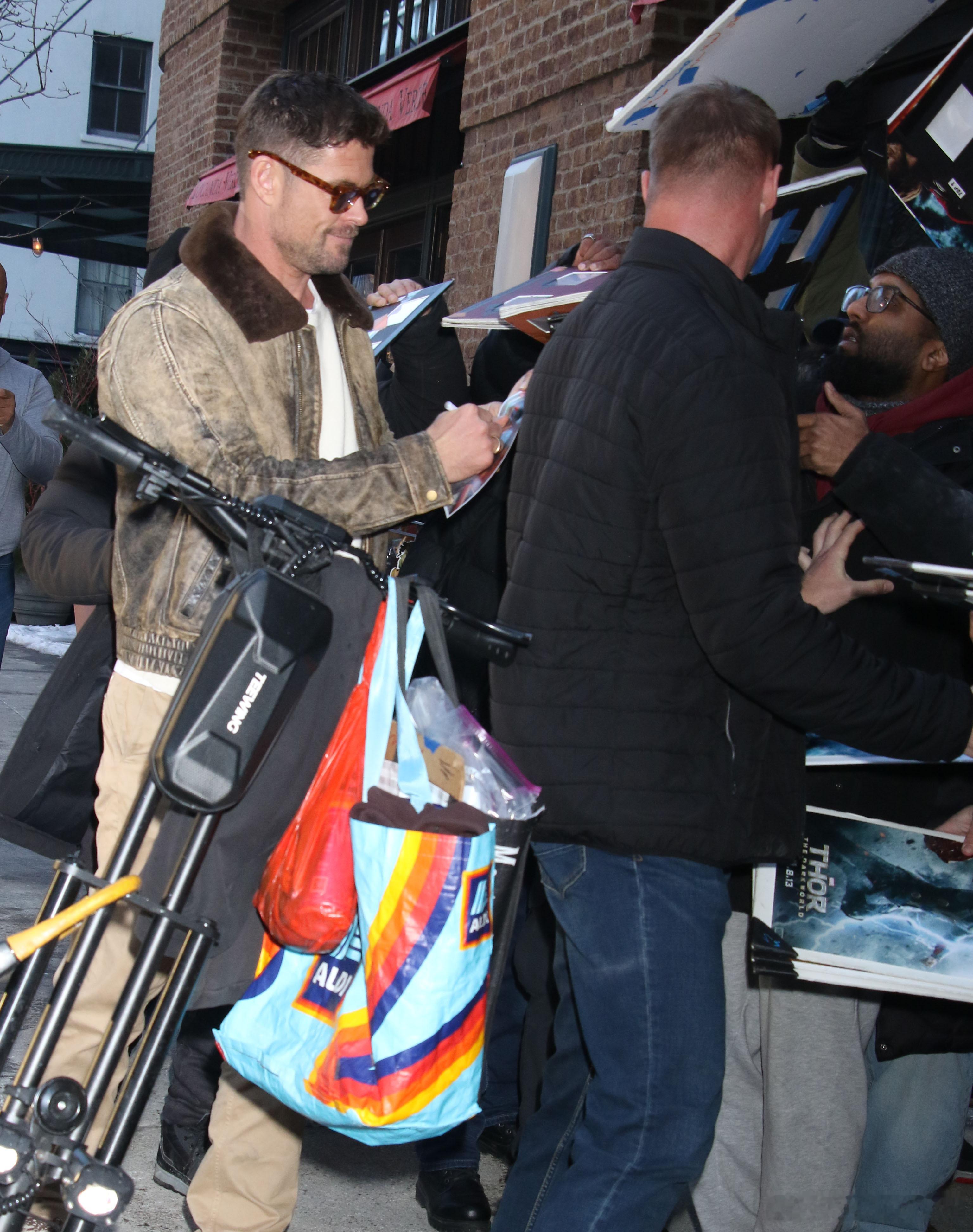 Chris Hemsworth克里斯海姆斯沃斯在纽约外出,参加一场新片《洛杉矶劫案》的放映会后离开现场