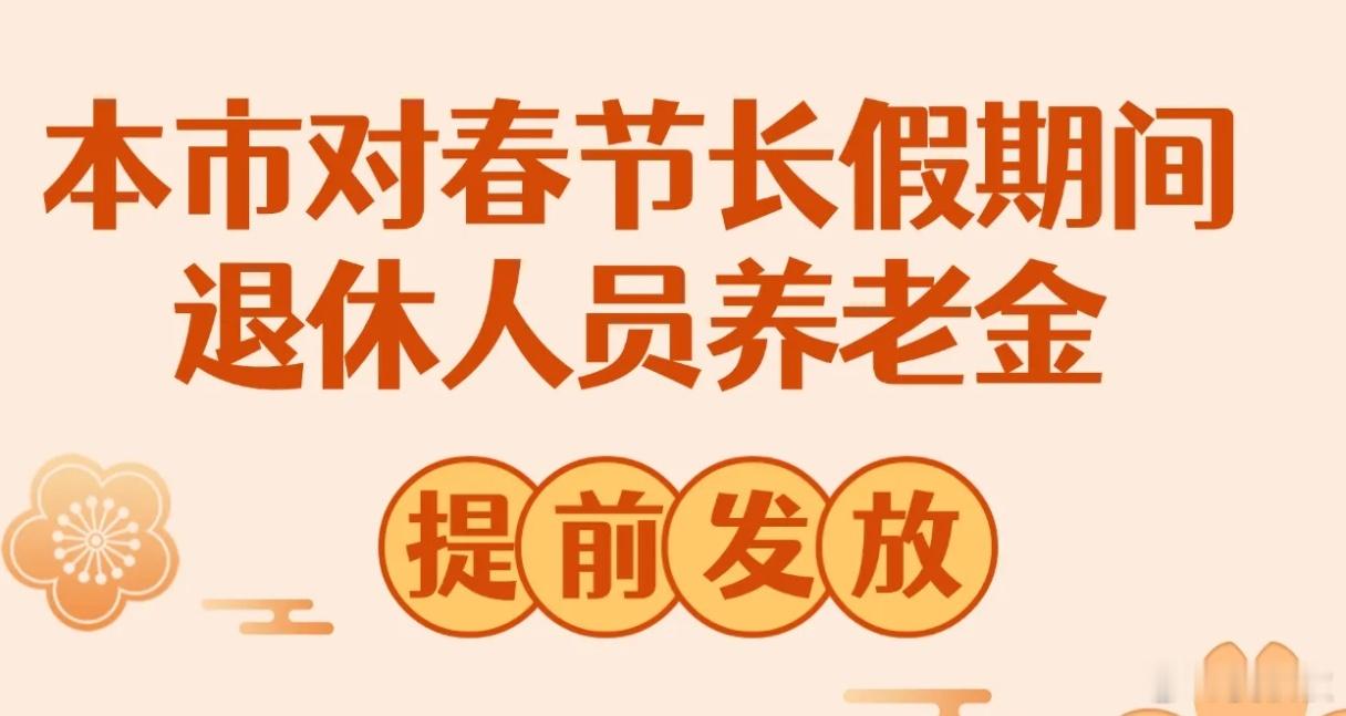 今年春节,退休人员的养老金,将提前发放。这是老规矩,也是实实在在的惠老措施。根据“上海人社”,2026年2月15日至23日恰逢春节长假,为了让广大离退休(职)人员过一个愉快祥和的春节,市人力资源社会保障局将对春节长假期间发放的离退休(职)人员养老金,提前发放。具体安排如下:第一,原定2月9日-14日发放城镇职保养老金的人员,从2月9日起,可通过相关银行、邮局领取。