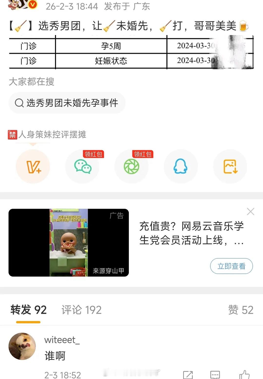 嫂站发的这是谁?选秀男团的哥哥让嫂未婚先孕、还打t了吗?