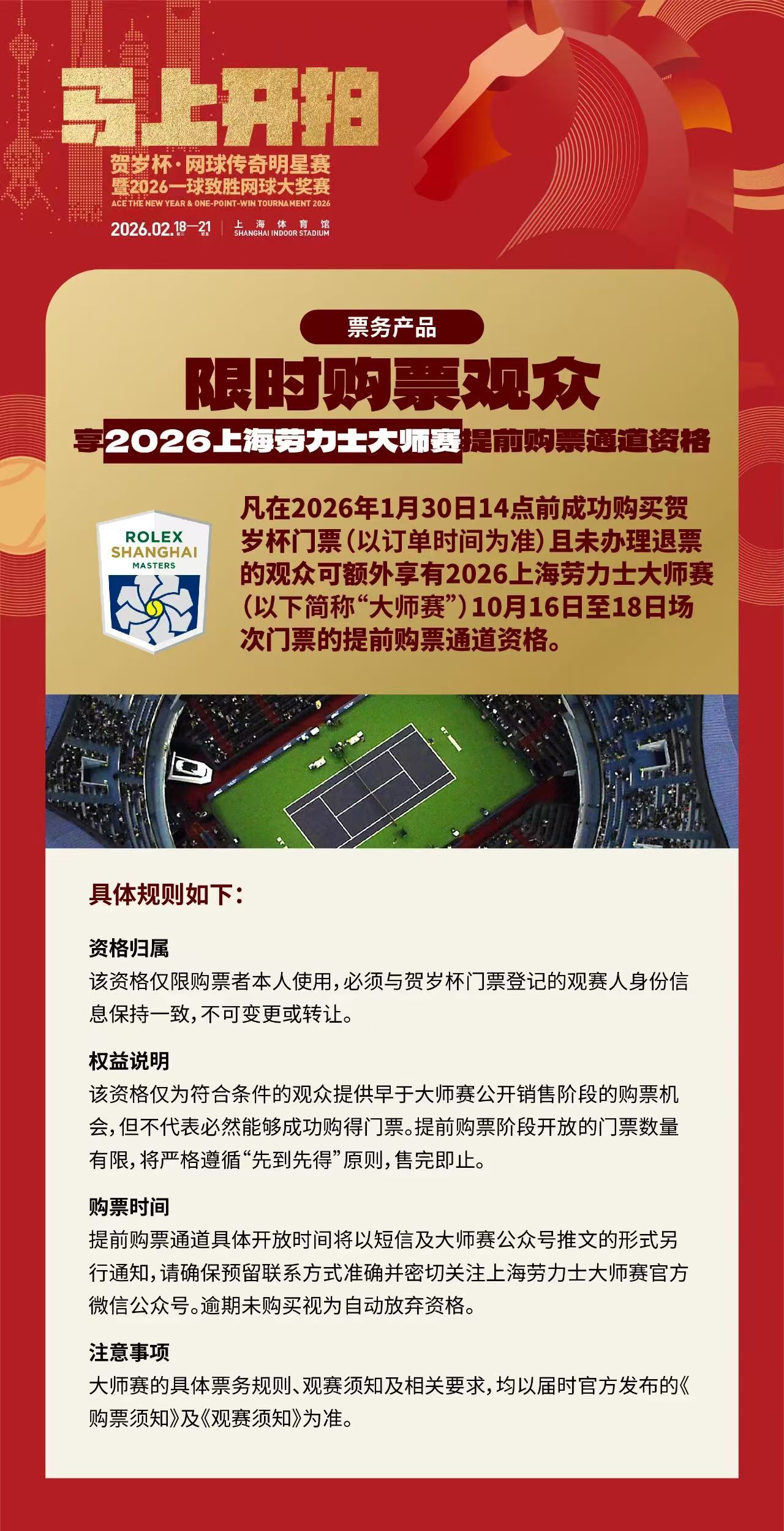 既然官宣了,我也瞒不住了。是的!大年初四在上海万体馆开打的贺岁杯·网球传奇明星赛,刚在澳网和萨芬打完球的我,又要作为网球达人队的成员,上场比赛了
