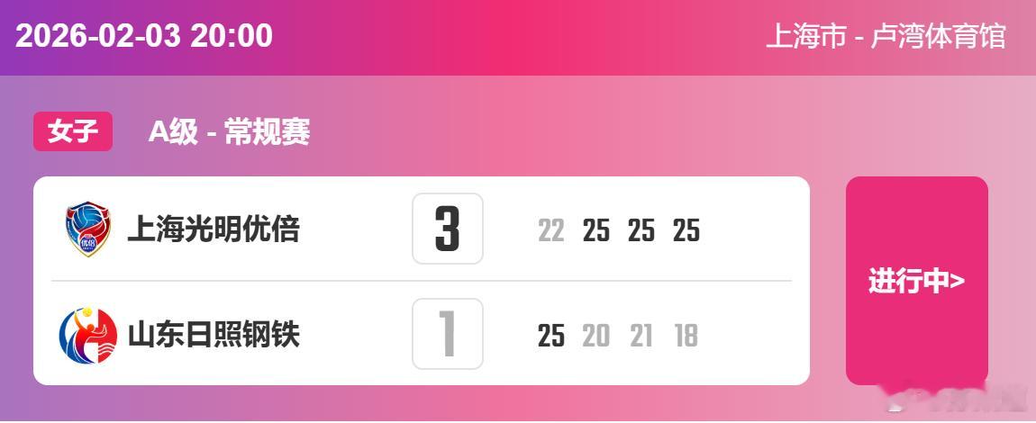 2025-2026中国女排超级联赛排超联赛上海女排3-1(22-25/25-20