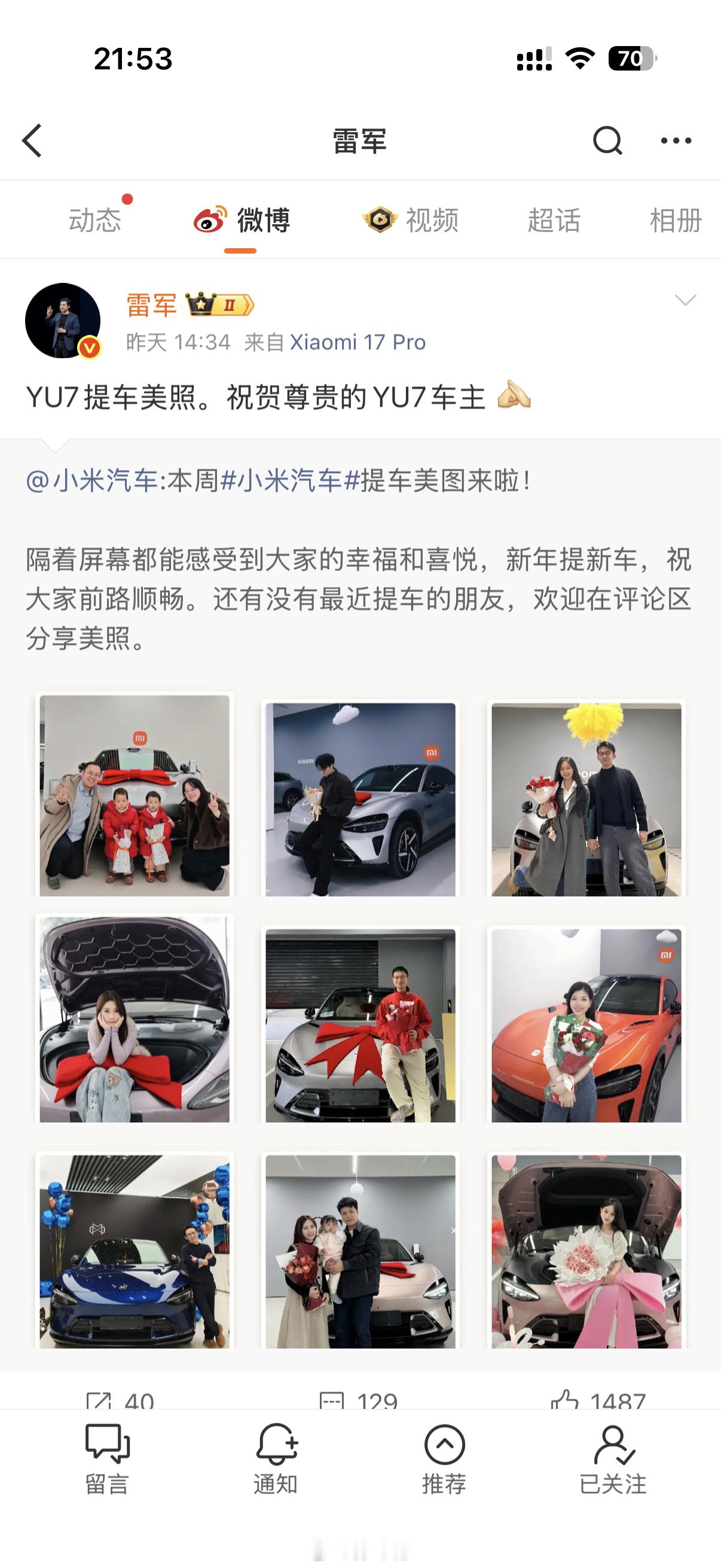 上雷总微博了!还是C位!小米汽车雷军 深圳·深航假日名居