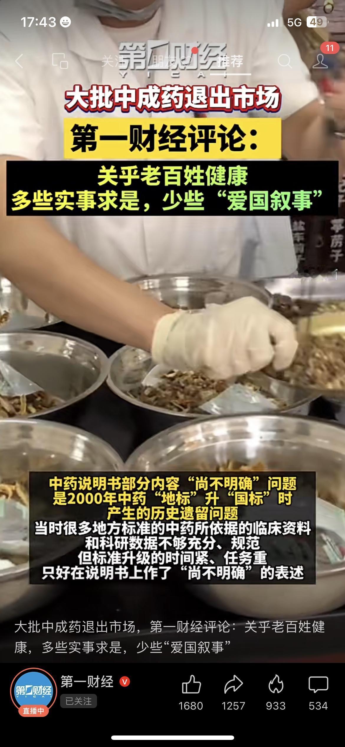⚠️注意!大批中成药要退出市场了! 国家药监局新规,2026年7月后,说明书里“禁忌、不良反应、注意事项”标“尚不明确”的中成药,一律不准再卖。我妈常年吃的某款止咳药,说明书就写着“尚不明确”,这下得赶紧换了。 药品说明写“尚不明确”,不是免责牌,是悬在普通人头上的雷。 你会主动检查家里常备药的说明书吗? 民生热点 中成药退市