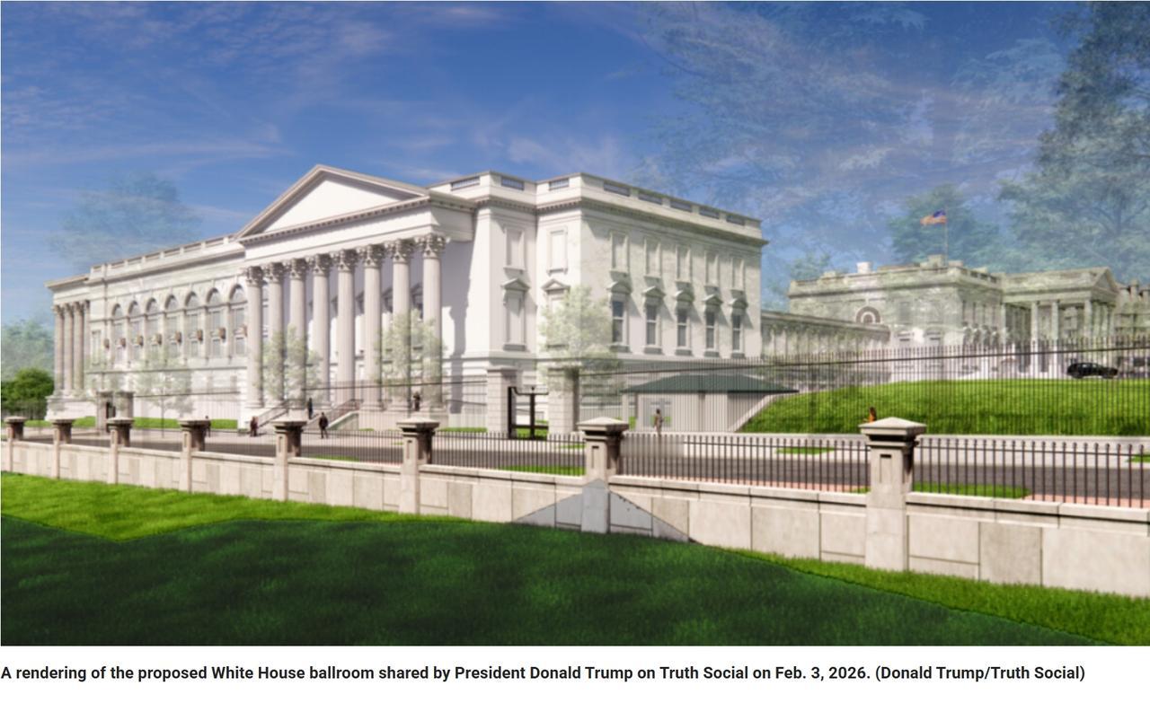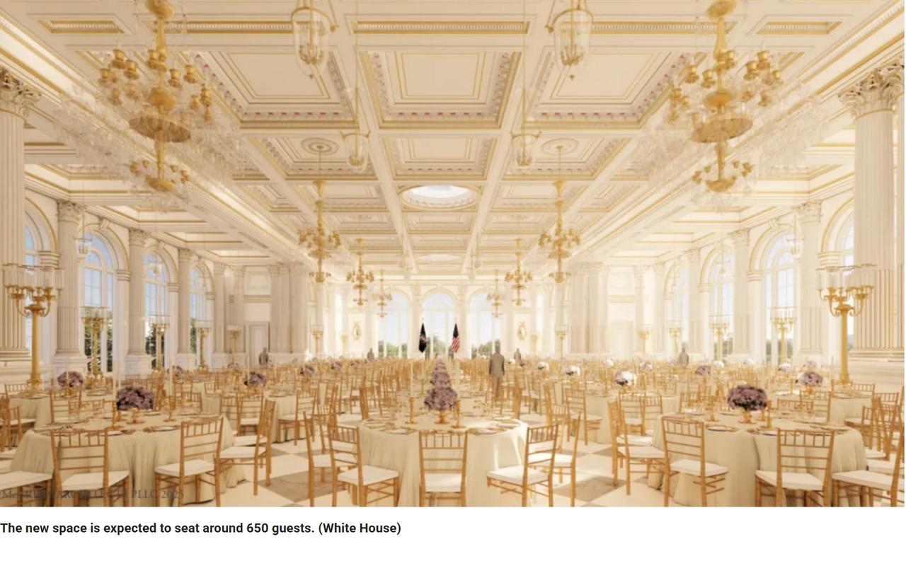 特朗普公布白宫新建宴会厅的效果图 当地时间周二,特朗普展示了计划中的白宫宴会厅新效果图,称该项目为历史性扩建,将“在未来数百年内为我们的国家有益”。 “这是首次向公众展示的渲染图,”特朗普在Truth Social的一篇帖子中写道。 特朗普表示,,该建筑在高度和规模上将与白宫相匹配,这座9万平方英尺的空间设计可容纳约650位宾客,目前正在建设中,预计耗资超过2亿美元。