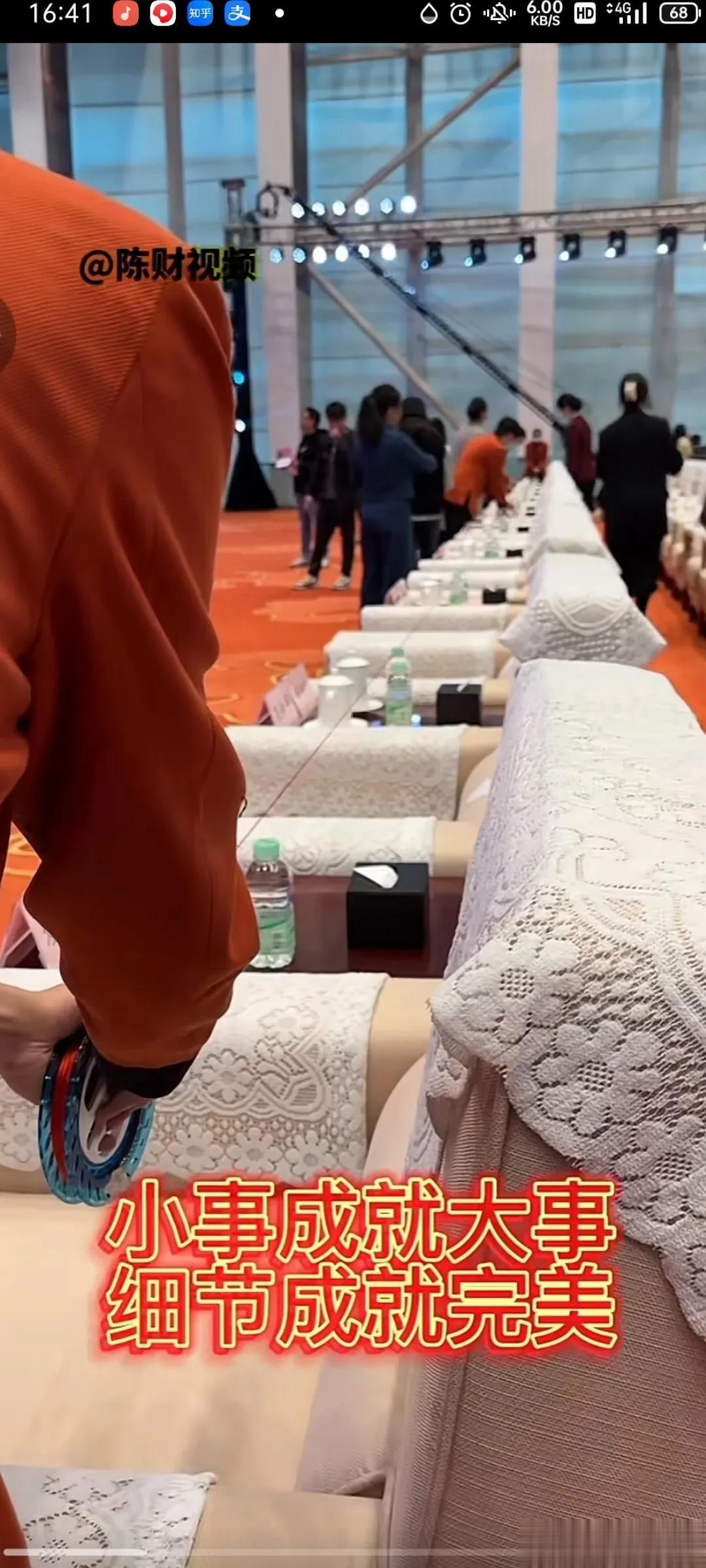 把事情做到极致不轻易说完美,这就是大国工匠精神,体现在每一个细节。 椅子和茶杯都摆放成一条直线,就这工作态度秒杀欧美国家,就这工作态度还有干不好的事情吗?