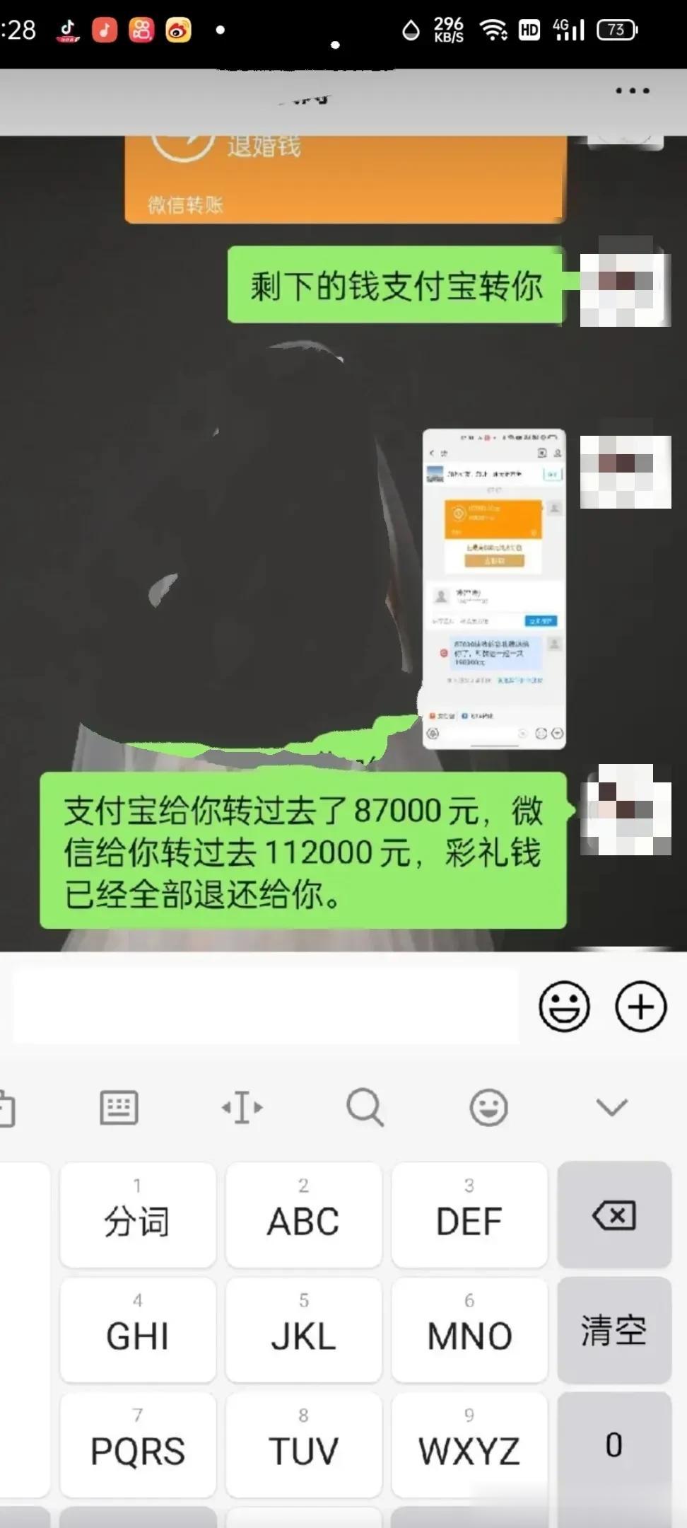 现在能把到手的19万彩礼钱衣服一分不差的退给男方的女生很少了吧? 有个同事在订婚以后因为某些原因双方吵了起来,后来也就分手了,是男方主动提的分手,按照风俗,男方提分手是不可能全部退回去的。 最后女方把男方给的19万彩礼钱全部退给男方了。 包括之前给买的首饰等,我顿时对她有了一丝崇拜,她喜欢钱但是不贪钱,换做别的女生肯定找个理由少退点。