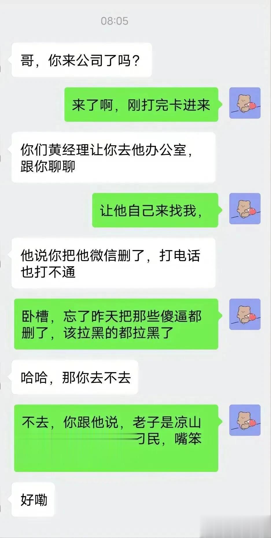 话说我也怼过无能的领导,虽然结果是离职走人,但是心情好很多。[笑着哭]
