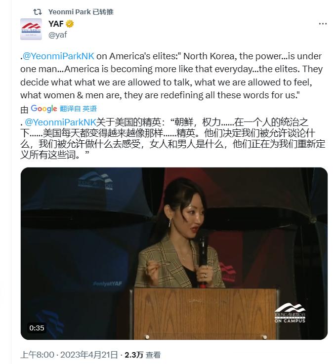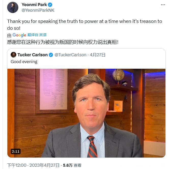 朴妍美在推特上说美国像朝鲜,又跟塔克混在一起,天天骂民主党。