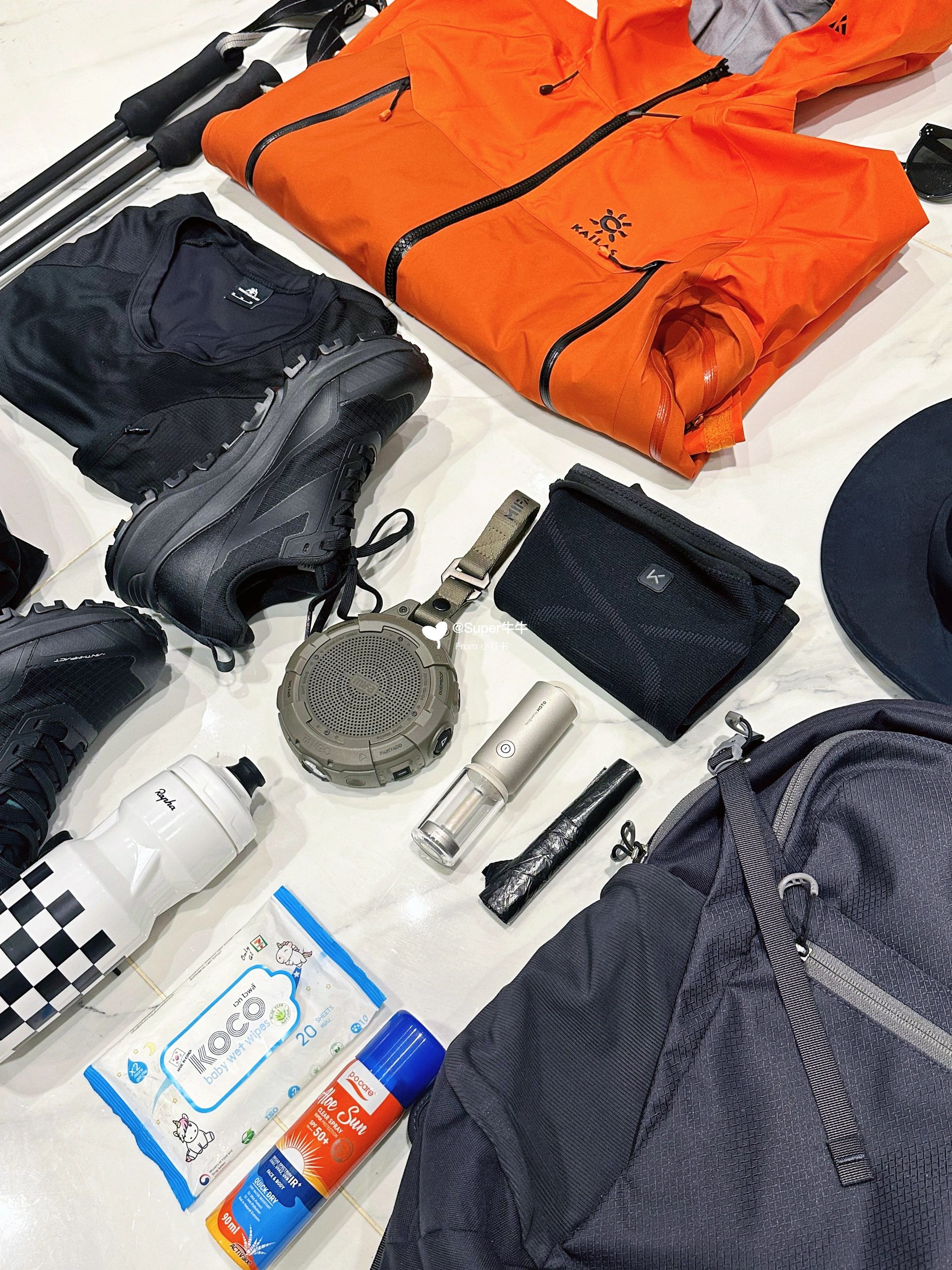 装备清单:OSPREY背包:一日徒步20L足够用登山杆:碳纤维折叠更轻便 黑色很酷护膝:减轻膝盖压力遮阳帽:户外硬防晒很重要防晒口罩:选眼角大面积防晒款徒步衣物 凯乐石MONT_X_硬壳:防风防水透气耐磨三层GORE-TEX面料_轻松抵抗山里环境变化 速干衣:快干面料_速干排汗户外裤:透气耐磨凯乐石括苍 徒步鞋:VIBRAM防滑大底,脚感轻还稳!氛围感好物:MIFA音响小猴照明灯 个人用品:轻量化水杯防晒喷雾纸巾垃圾袋准备好装备,一起去山里大口吸氧吧!
