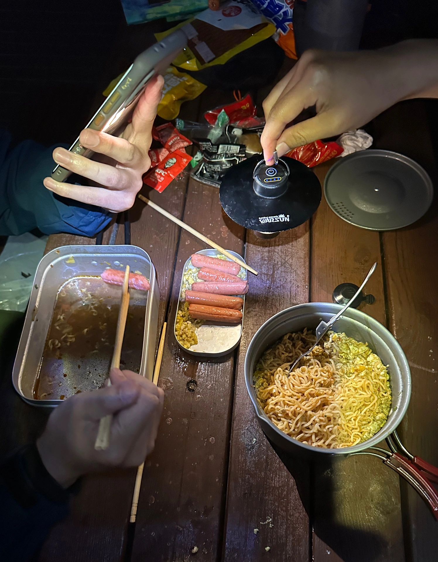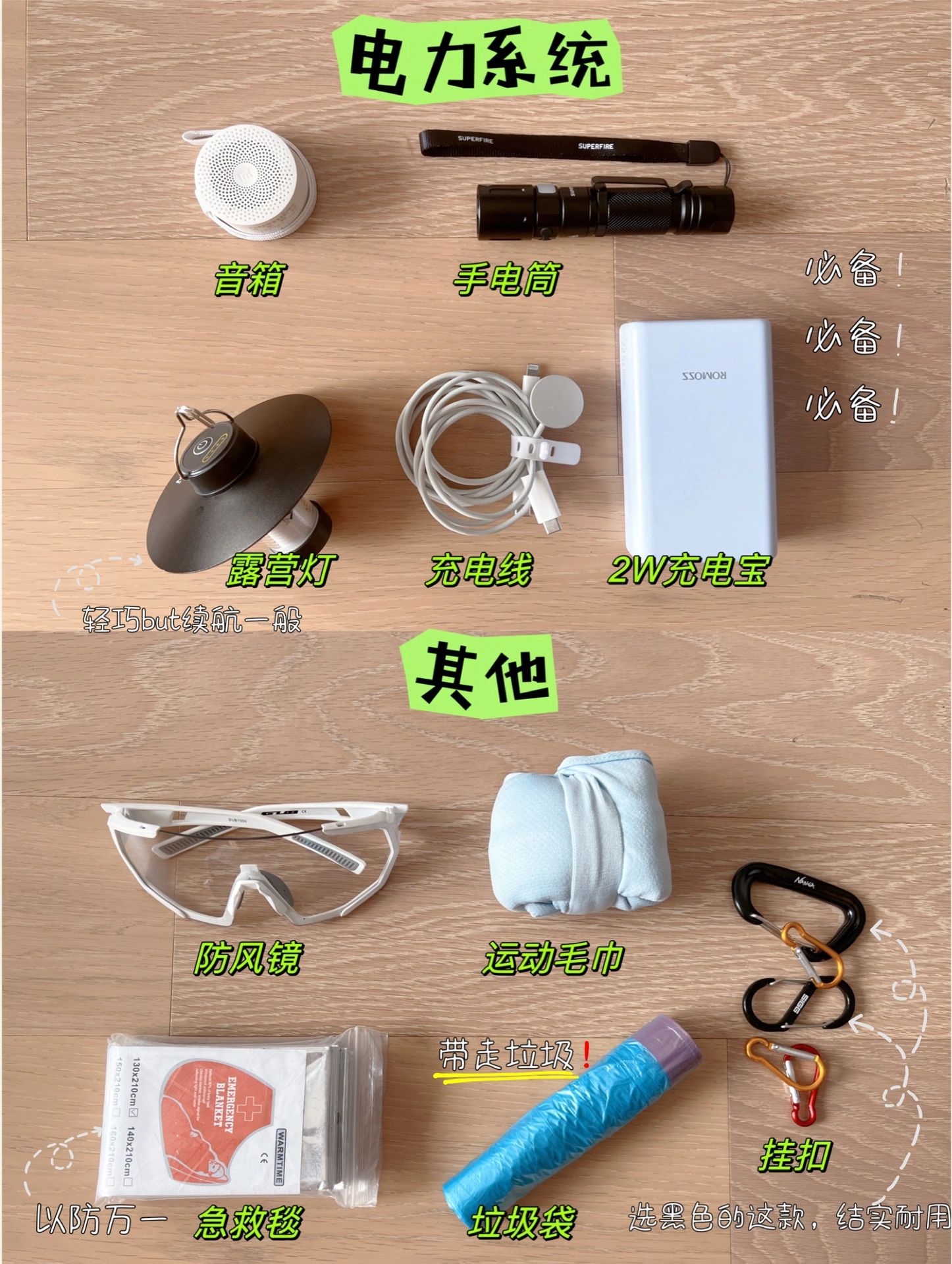 1。照明:露营灯+手电筒+头灯(出发前充好电)