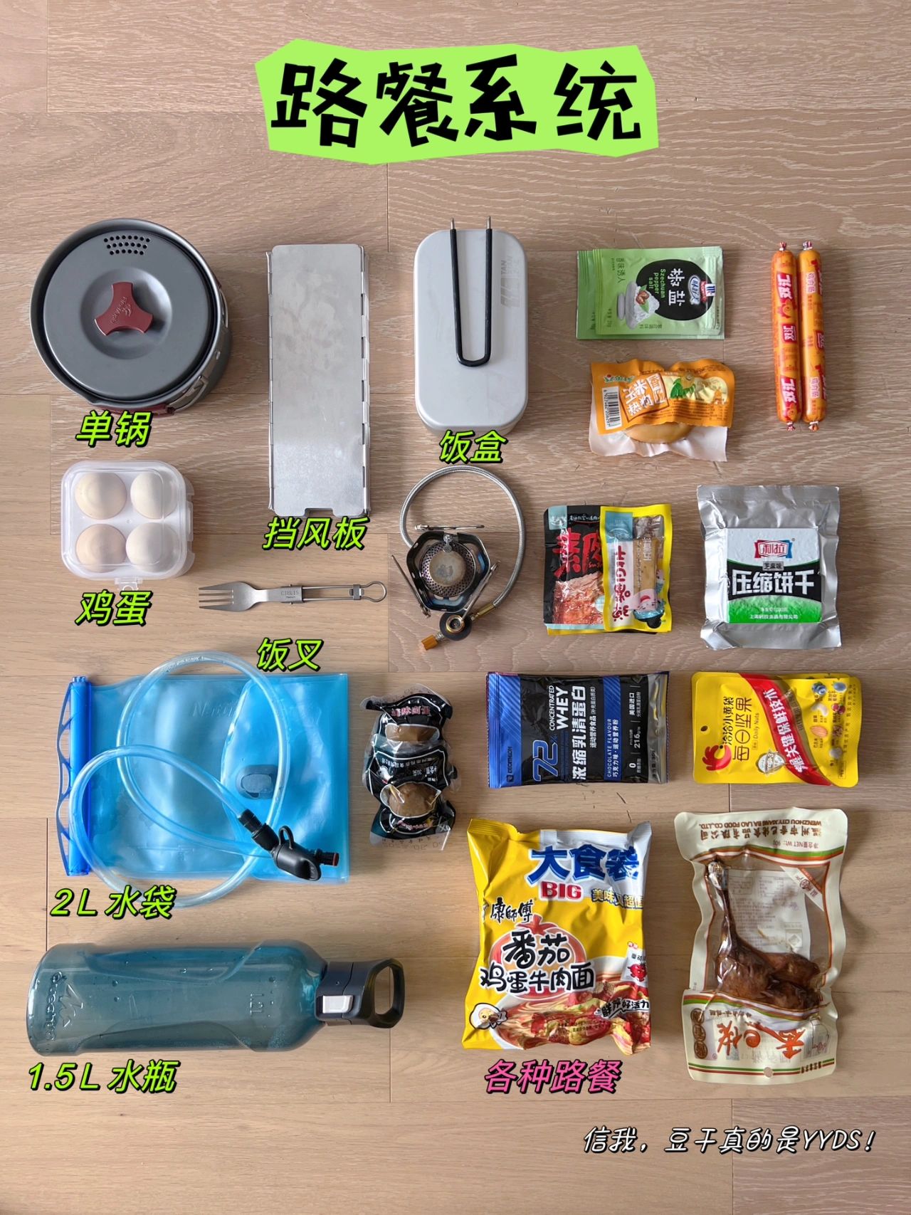 3。主食:方便面+鸡蛋+火腿肠4。路餐:豆干+坚果+巧克力+卤蛋+蛋白粉等