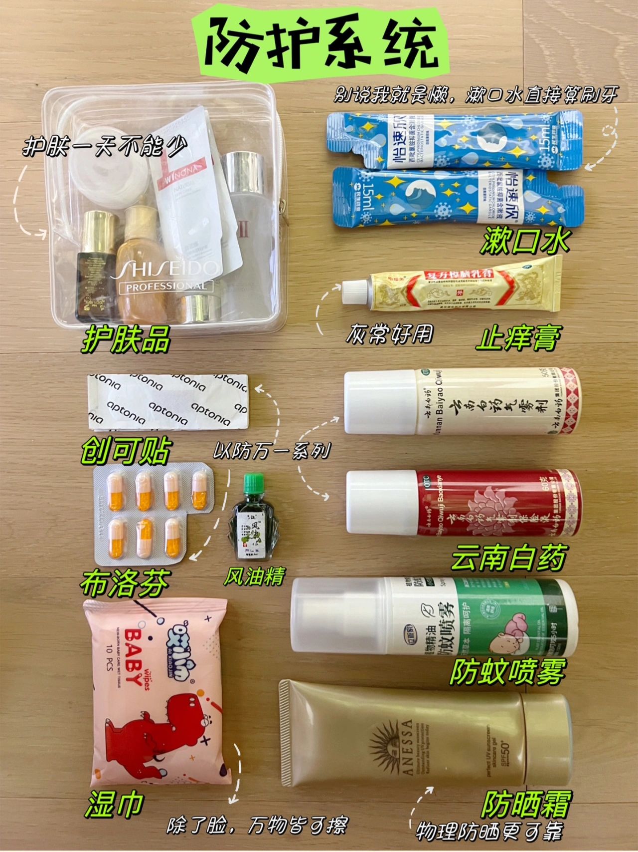 1。个人护肤+洗漱用品(一定要备防晒霜)