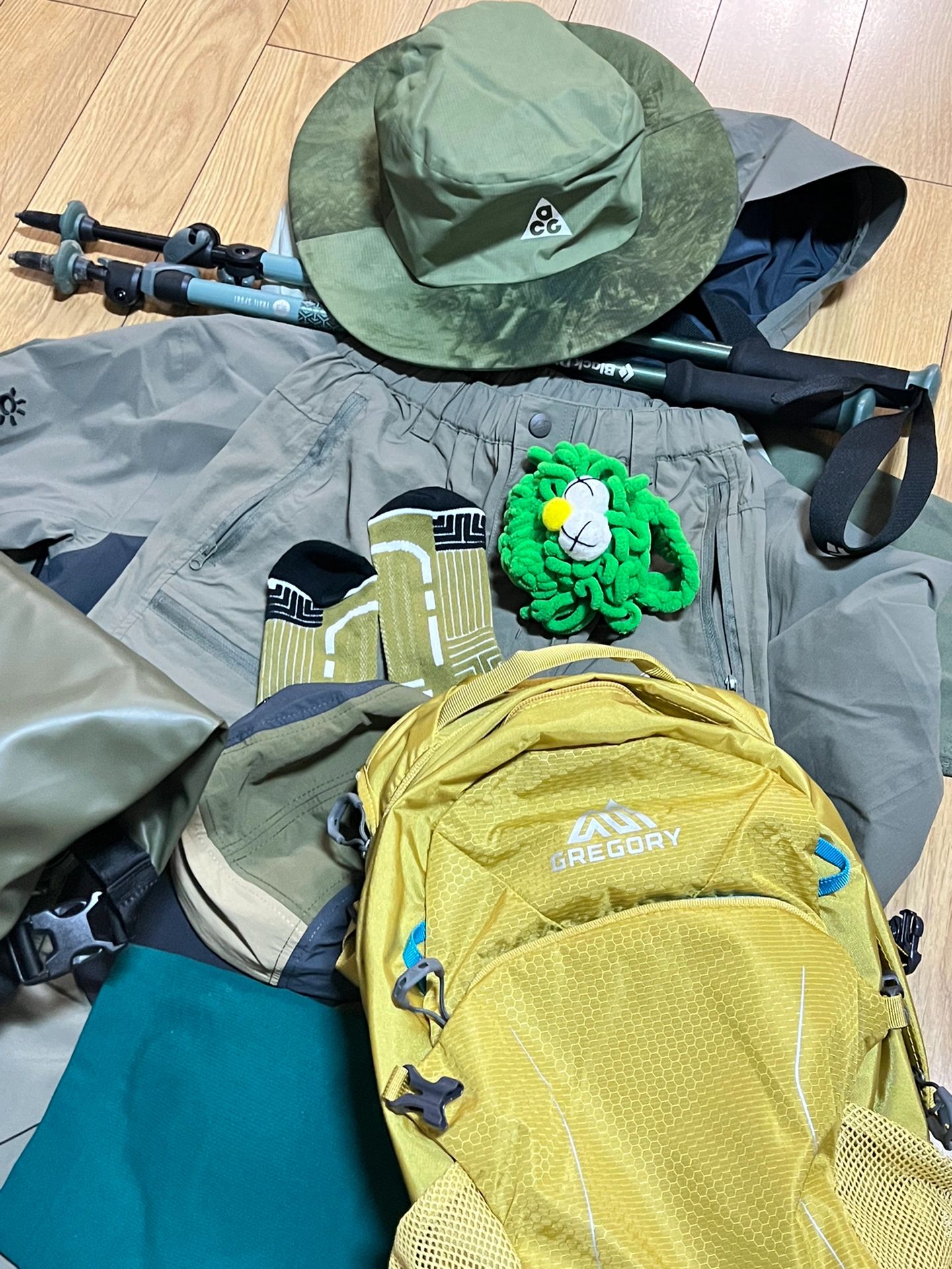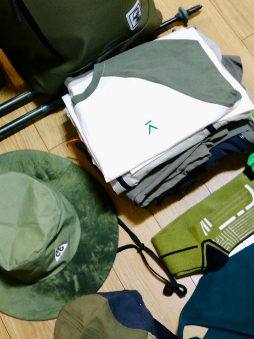 列了一个最近的绿色徒步清单~冲锋衣:凯乐石深苔绿春夏容易突然下雨,带一件暴雨级防水硬壳当雨衣。当然如果是盛夏的大雨还是建议带雨衣或者雨裙。风大的时候放风保暖,还可以淋瀑布,速干短袖:ACMEITEM橄榄绿选择一件排汗速干的短袖。这个版型偏大,我穿XS。防晒衣:uppervoid开心果感觉夏天会把它焊在身上,是那种很舒服的凉感面料,拉链、透气的结构之类的细节速干裤:topsky_军绿色这个裤子好神奇啊,不到100竟然版型比montbell还好。一口气连收3条…而且可以拆卸成短裤,速干面料。比较薄,感觉不耐磨,但是磨坏了再来一条也不会很心疼(比Lululemon刮坏了好很多哈哈哈哈哈)压缩袜:山野青空橄榄绿女孩子们可以看看高尔夫球袜,压缩性质的小腿袜配短裤就很nice。我还有一双白色的版,鞋底有防滑的小颗粒贼拉舒服。背包:Herschel_常青藤绿防水防雨的材质,像那种油蜡触感冰冰凉凉的。缺点是没有背负。感觉适合露营轻徒步和通勤(以及出差徒步背包:格里高利蜂鸟黄绿色每次背出去被人夸,实物正常光下更绿一点,阳光下更黄一点。我本来是挺满意的,但是和我同时入的另一个blackyak的细节比起来,竟然还差点意思。帽子:acg_DDM4931-326拍不出来它的美,拿到手才知道质感。上面的绿色是渐变的,有点像She_Her_Hers的那首《Arrows》的专辑封面。头顶的那块面料也是凉感的,好折叠且不会变形。带防风绳。手表:高驰apex2_pro_墨绿色手表之前已经写过了,我觉得最有用的是随时检测徒步心率,不会因为自己无法估计的劳累而ga掉。心跳一到160我就歇一歇,控节奏。屁垫:挪客军绿色这个随便选的,还是因为颜色。登山杖:Black_Diamond月桂绿铝合金的,非常结实。