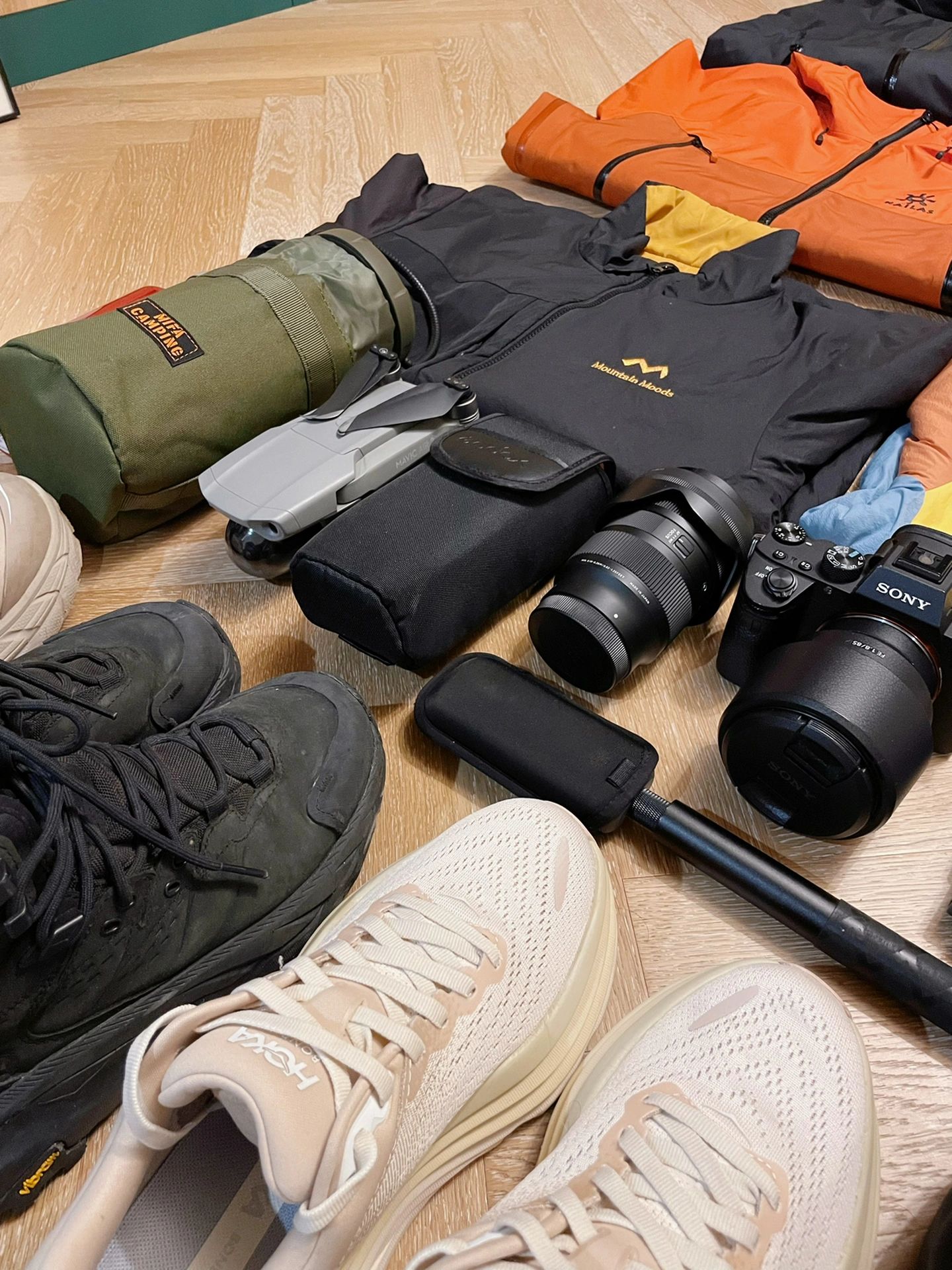 依然是最爱的川西,这次时间有限,我们选择一天党岭徒步,一天雅拉雪山,再去一趟四姑娘山。正好整理了一个装备清单,因为都是当天往返的行程,拍照为主,所以没有重装备,很适合轻装徒步的姐妹们参考。黑色背包:始祖鸟Mantis_20L,外形好看,防泼水,有背负系统,但自重不算轻,适合短途徒步黄色背包:UPPERVOID,本来是个带马甲的野雪背包,非雪季的时候被我们单独卸下来做徒步背包,容量不大,但无奈太好看了芥末黄速干裤:Snowline,面料防泼水,而且有一定厚度,垂坠感很好黑色和黄色冲锋衣:始祖鸟Beta_LT橙色冲锋衣:凯乐石_Montx拼色冲锋衣:NIKE_ACG黑色速干裙:OOTWEEK,非常好搭配——只要川西气温允许米色速干裤:ACSENSE,非常轻薄的伞兵裤灰色速干裤:yuuue,有一定厚度,脚踝松紧扣调节,适合气候不恶劣的轻装徒步棉服:Mountain_Moods,作为中间层非常保暖,自收纳系统也很适合气温多变的川西,随时穿脱速干衣:KHKX,本来是滑雪速干,因为太暖和已经被挪用到户外运动内衣:Pom_Peche水壶:SIGG,非常轻的铝杯,可以挂包上便携音箱:MIFA,兼具音响露营灯充电宝功能徒步鞋:全部来自HOKA登山杖:挪客&KILIMA其他装备:渔夫帽、防晒霜、墨镜必不可少,另外各类拍摄设备就不一一列举了。准备好了吗?那就一起出发啦!