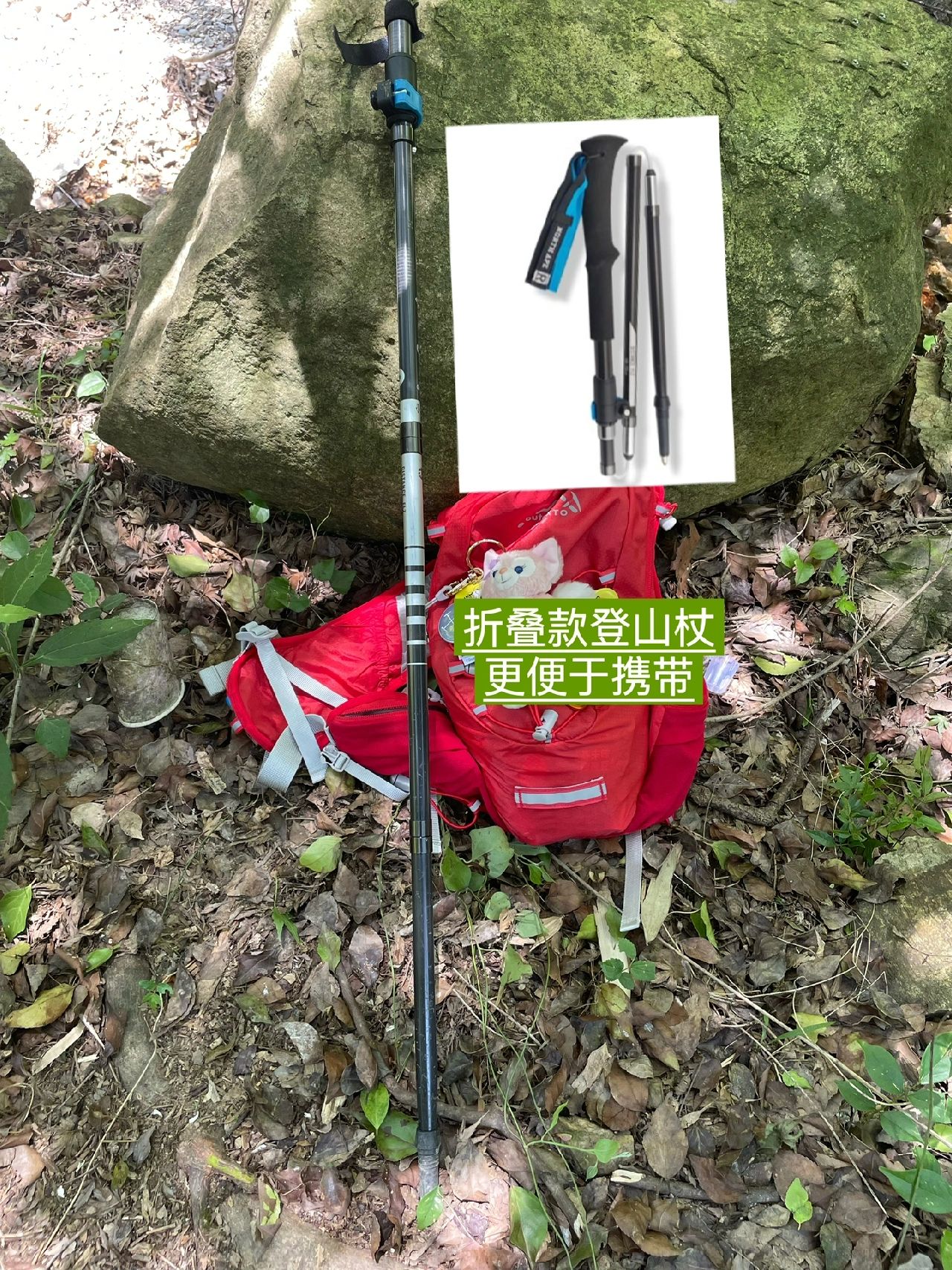 3.小包完全可以满足一日来回徒步需求登山杖上陡坡、下大坡时可以分担腿部压力,保护膝盖。