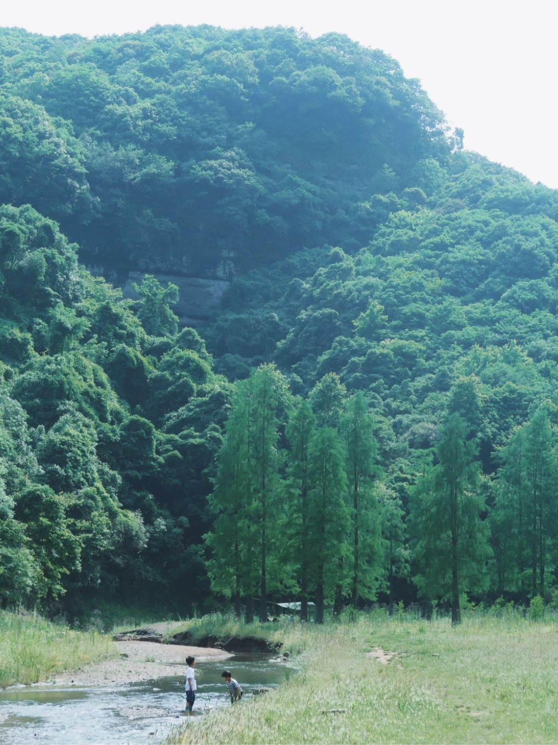 4.导航到清秀寺,这里很好停车,还有厕所往左爬上斜坡路过一大片茶园,三五分钟就会看到「清修岭古道」路牌,我们选择从这里进入,是听说天湖景区那个入口时开时封,而且难度较大,不适合带着小朋友我们下午1点进入古道,徒步一个半小时后到达水杉林在大草原上休息玩耍补充能量后原路返回,走出古道是下午5点半整个行程大概五六公里,总用时4个半小时这个路线小朋友徒步的难度还是有一点的,山路狭小且陡,还有好几座独木桥,下过雨后有段路会特别泥泞湿滑一路上也没有任何手机信号,到达目的地看到那一片郁郁葱葱的森林,开阔的河床草地上开满野花,阳光撒在波光粼粼的水面上,这样一个与世隔绝的唯美秘境,真的值得我们这一路爬山涉水而来~