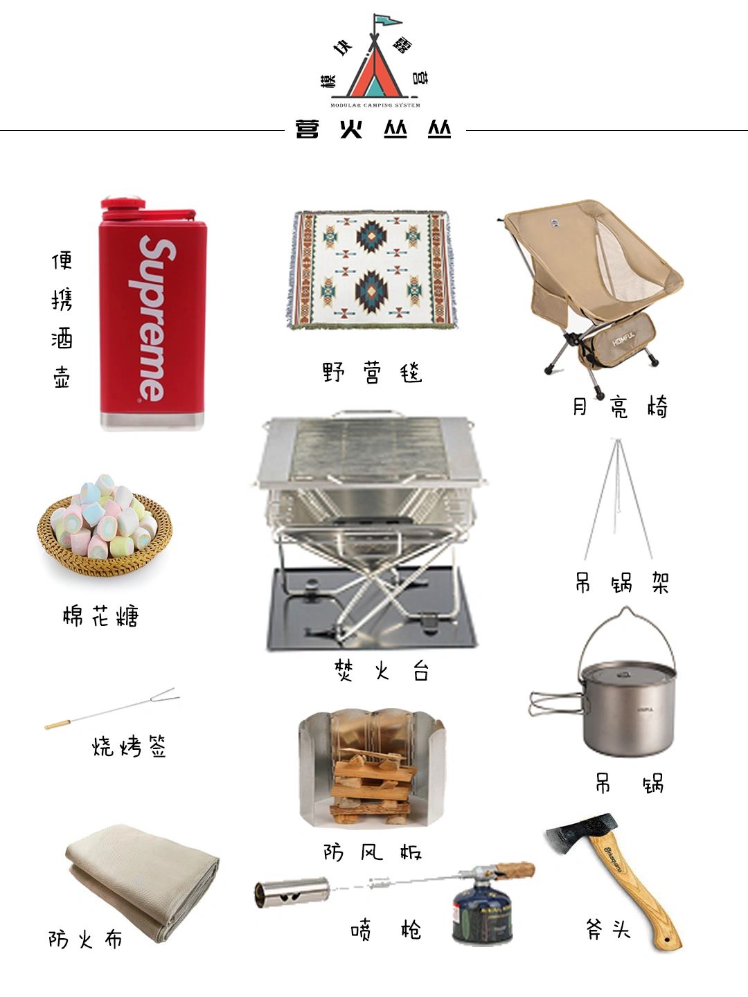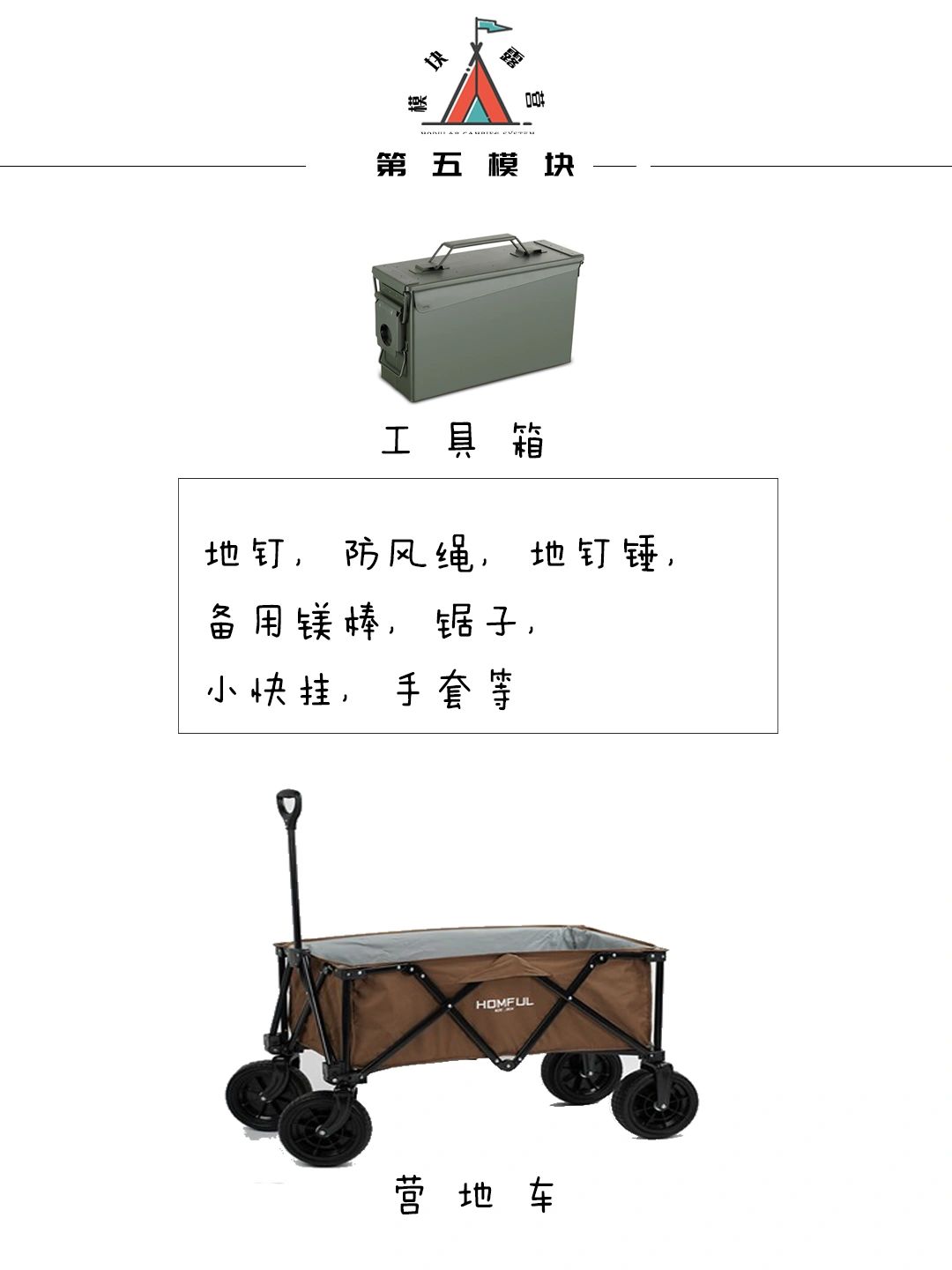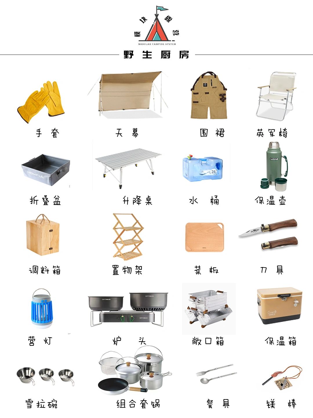 精致露营第一次露营带什么露营装备清单新手露营必备小白露营装备清单收藏推荐自然有家(起居模块)[得意R]帐篷,睡袋,充气枕头,防潮垫,行军床,铝箱,营灯(草帽灯灯笼花),灯杆,营地旗,灯绳,气灯,野营毯,蝴蝶椅,蛋卷桌,头灯,氛围灯,蝶形天幕等无边客厅(客厅模块)[斜眼R]厂型天幕,蛋卷桌,克米特椅,户外电源,音响,卡式炉,咖啡壶,搪瓷杯,木盘子,投影仪,保温箱,灯笼花,灯绳,纸巾盒,长气罐等野生厨房(餐厨模块)[哇R]厂型天幕,升降桌,炉头,气罐,煎锅,厨具套装,调料箱,菜板,刀具,水桶,置物架,雪拉碗,餐具套装,折叠水桶,保温箱,折叠收纳箱,铸铁锅,镁棒,高款英军椅,围裙,保温水壶,敞口箱等营火丛丛(篝火模块)[喝奶茶R]野营毯,月亮椅,营火台,三脚架,吊锅,烧烤铁签,棉花糖,防火布,斧头,酒杯,酒壶,挡风板等第五模块(必备模块)[吐舌头H]急救包(详见图中)工具箱(详见图中)营地车。
