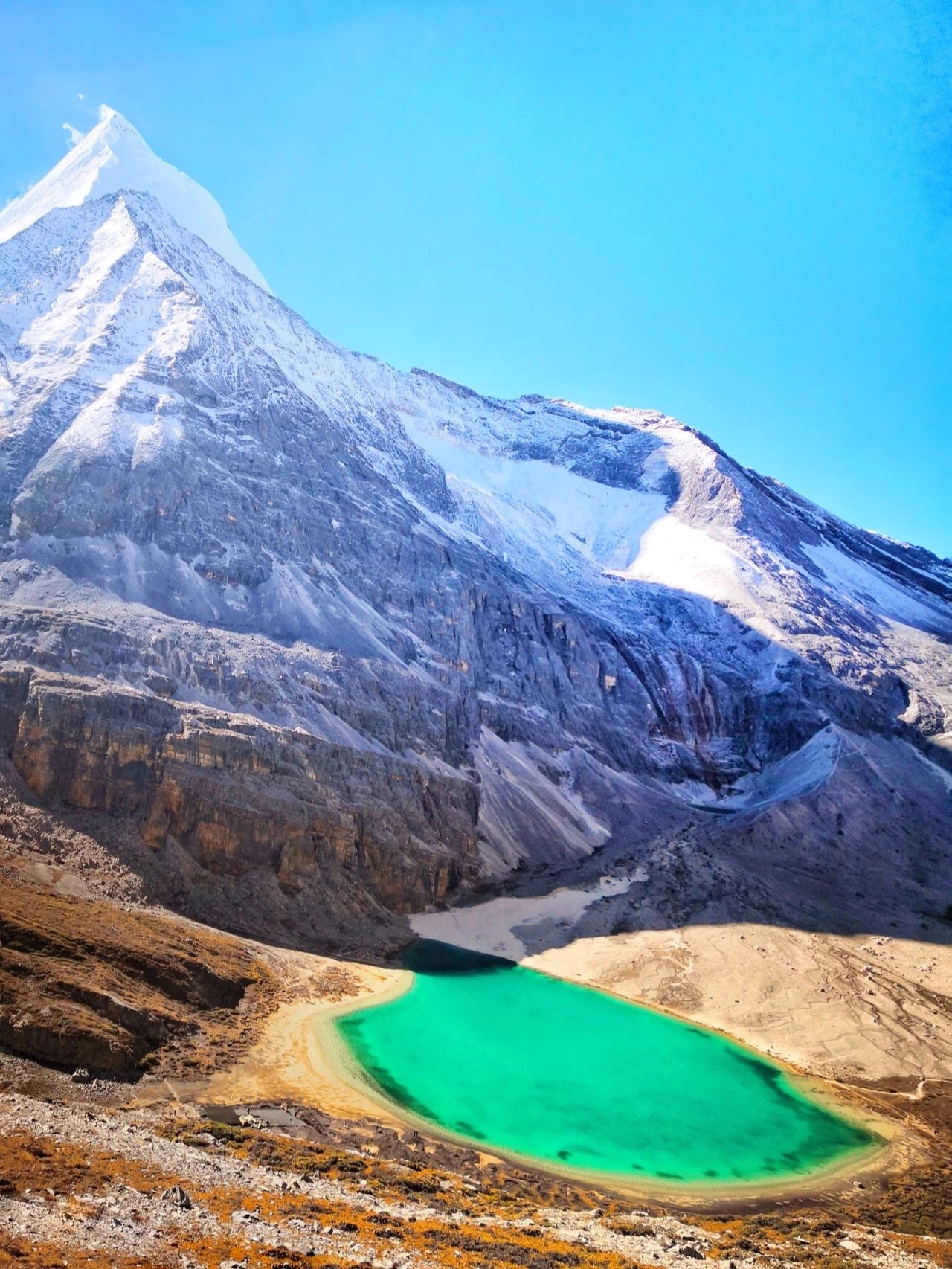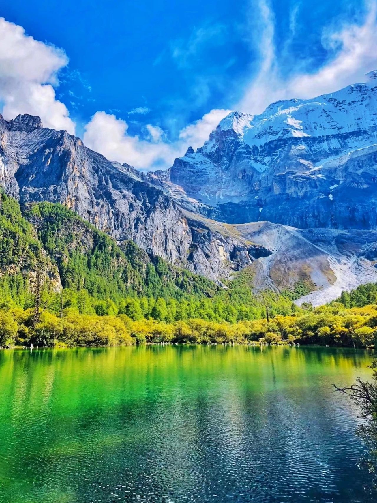 在藏区是与西藏羊卓雍措、纳木措和玛旁雍措齐名的著名圣湖珍珠海,海拔4100米,水平如镜。它是亚丁海拔最低的圣湖,传说还是白度母的魂湖波用措,海拔4750米,湖口正对央迈勇。