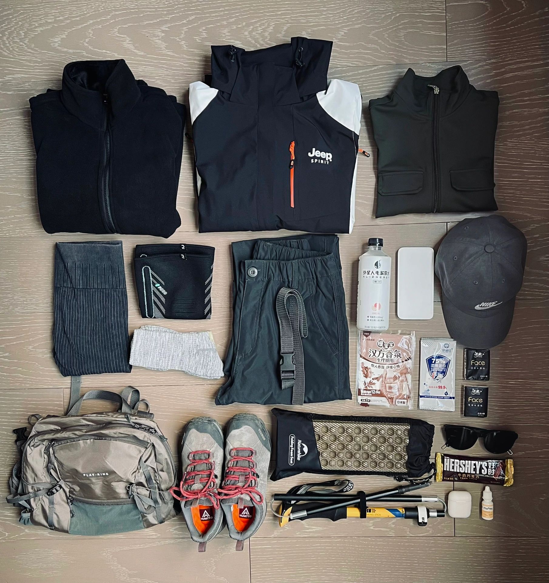 新手徒步,这些装备就够了我是那种:不确定自己是否真正热爱这件事或物的时候,我是不会为它付出太多心思money所以在我第一次徒步时购买的装备都是平价版如果你也是这样,我的装备或许你可以参考衣物类以下衣物装备是我根据当时气温选择的。徒步当天山上的气温在1°C,13°C,抓绒上衣我只在后半程穿着,前半程穿了小会儿都出汗了,所以我觉得这件的保暖作用还是不错的。冲锋衣,抓绒上衣:Jeep速干衣:一件普通的健身紧身外套裤子:一条舒服的健身裤登山袜,虽然很便宜,但全程16km脚没有不舒适,这双更适合休闲路线吧,登山包:很轻很轻,只是分层少,舒适感也OK,遮阳帽:护膝:迪卡农,护膝真的很有必要!!我没有带,第二天膝盖很不舒服,热敷和烤电才缓解了许多,登山杖:下山必备品,户外坐垫:其他配件:耳机,墨镜,暖宝宝,湿干巾,垃圾袋,充电宝,隐形眼药水路餐:巧克力,功能饮料,水,面包,牛肉干,每日坚果,干吃面好的装备会带来好的体验感,同时轻量化也很重要。