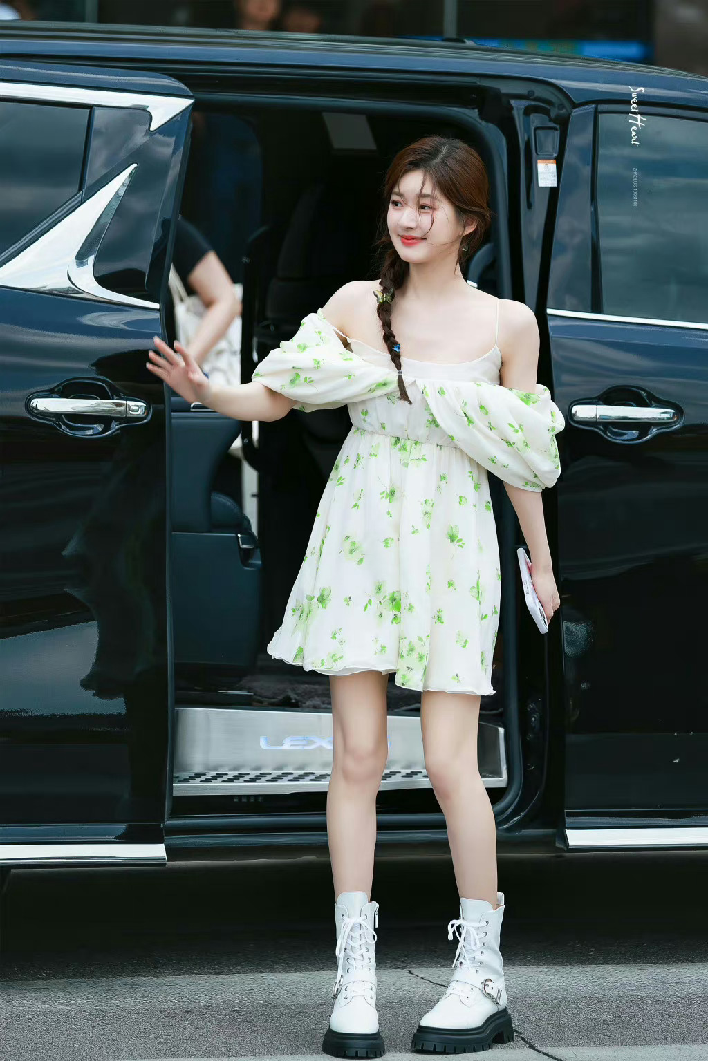 赵露思今日录制《你好星期六》,绿色的蝴蝶仙子!