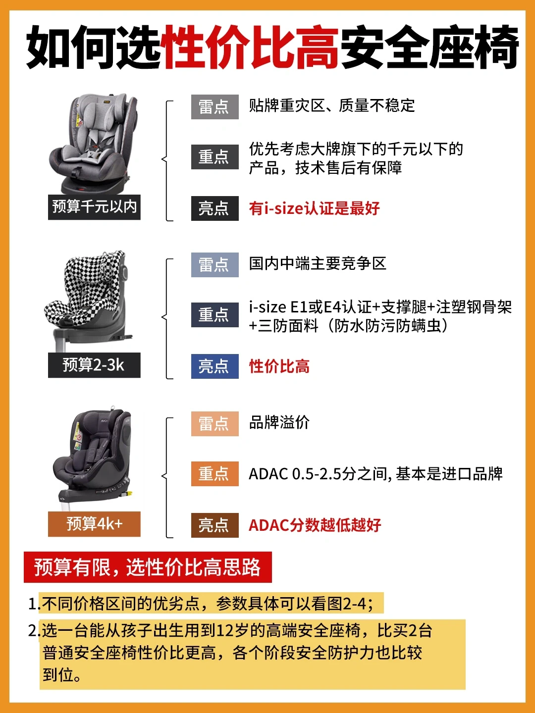 1.预算:不同价格区间安全座椅的区别