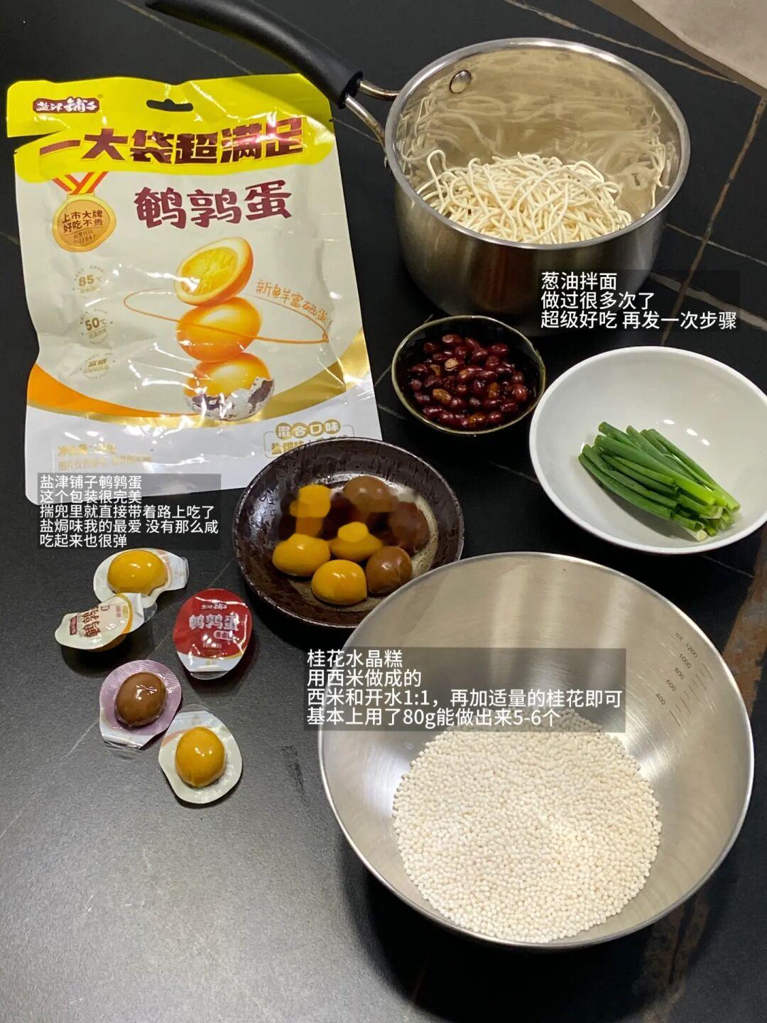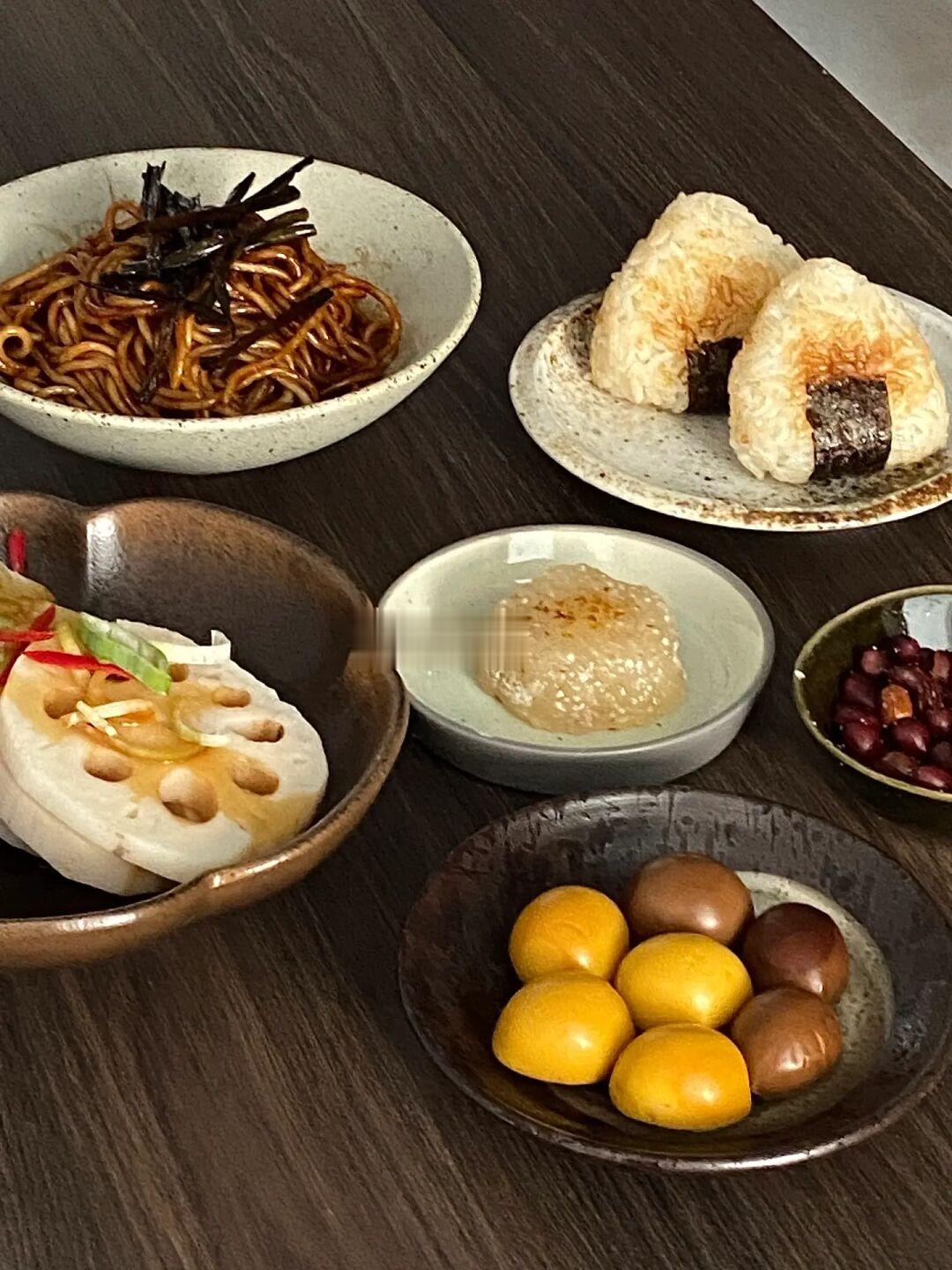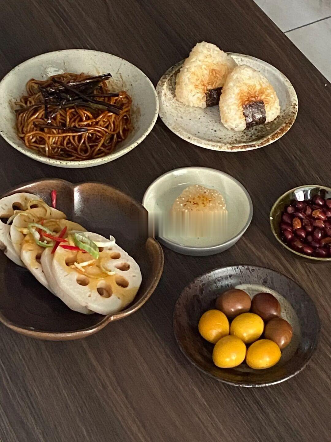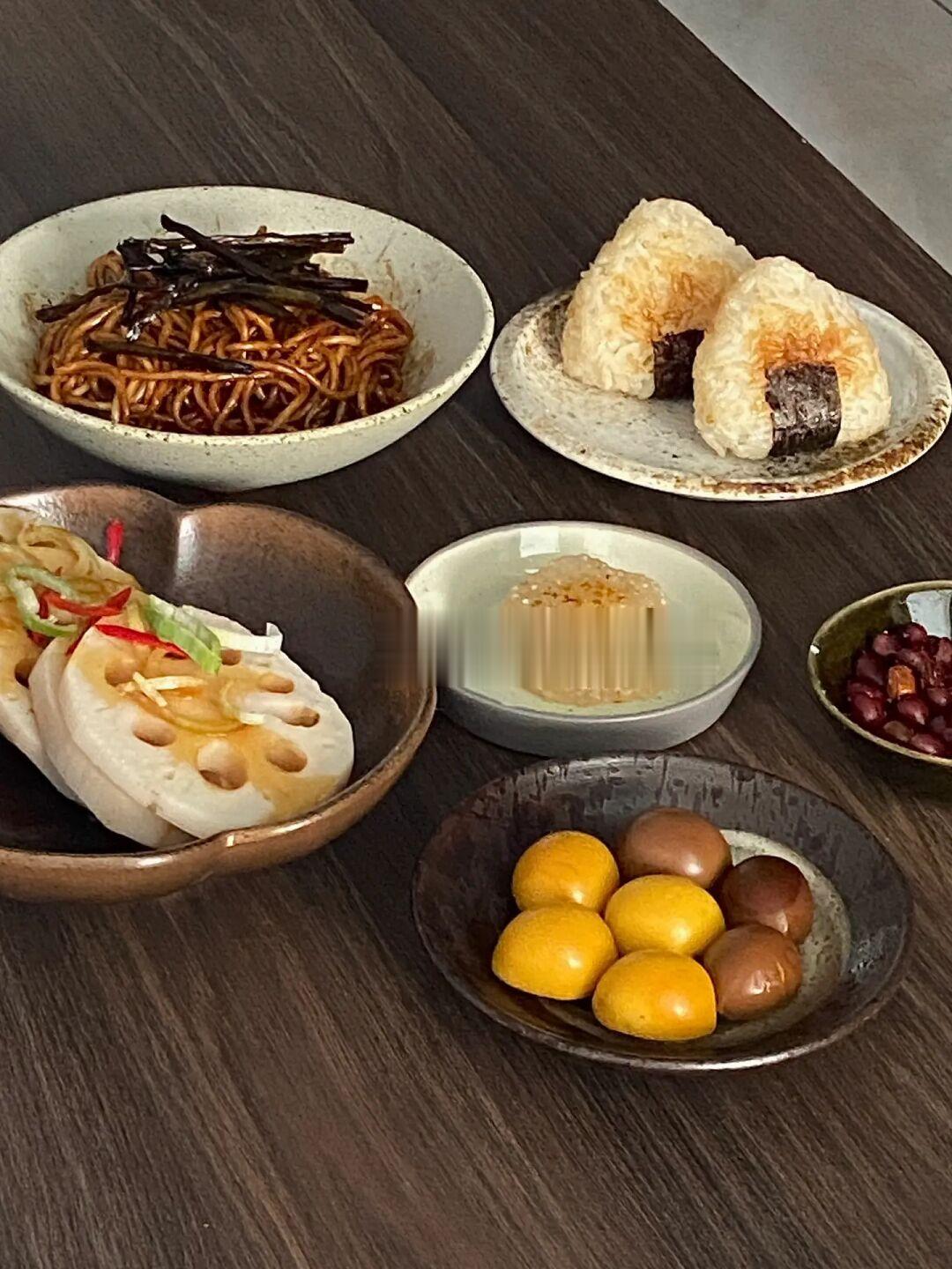很会做早餐的小番茄老师!今天这一顿不仅快速搞定,还搭配均匀,葱油拌面和饭团补充好碳水,桂花糕当作解腻甜点和盐焗鹌鹑蛋搭配着刚刚好,再来一份凉拌藕,完成一顿早餐!