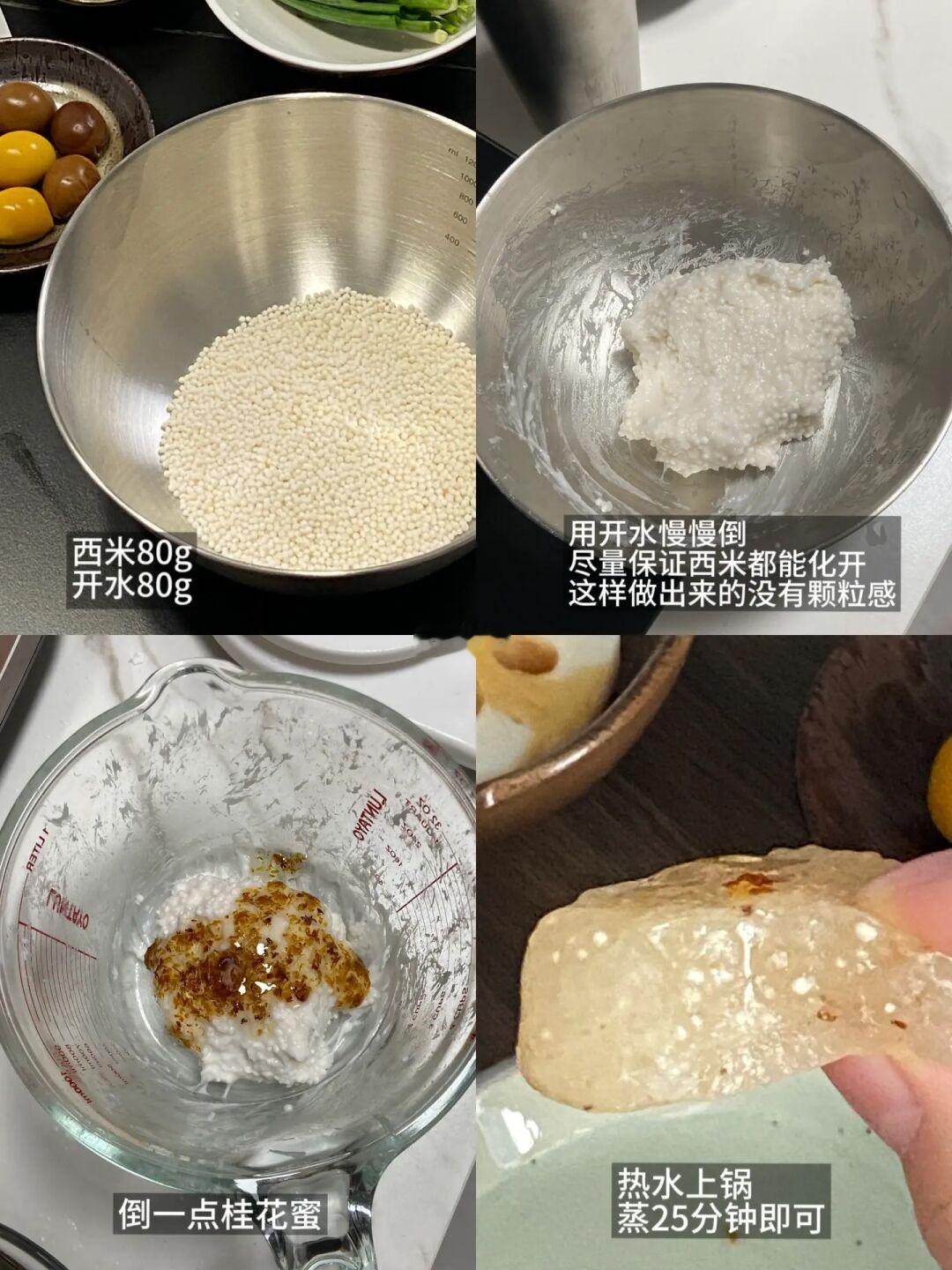 tips:西米尽量揉到没有颗粒状,做出来的水晶糕更透亮