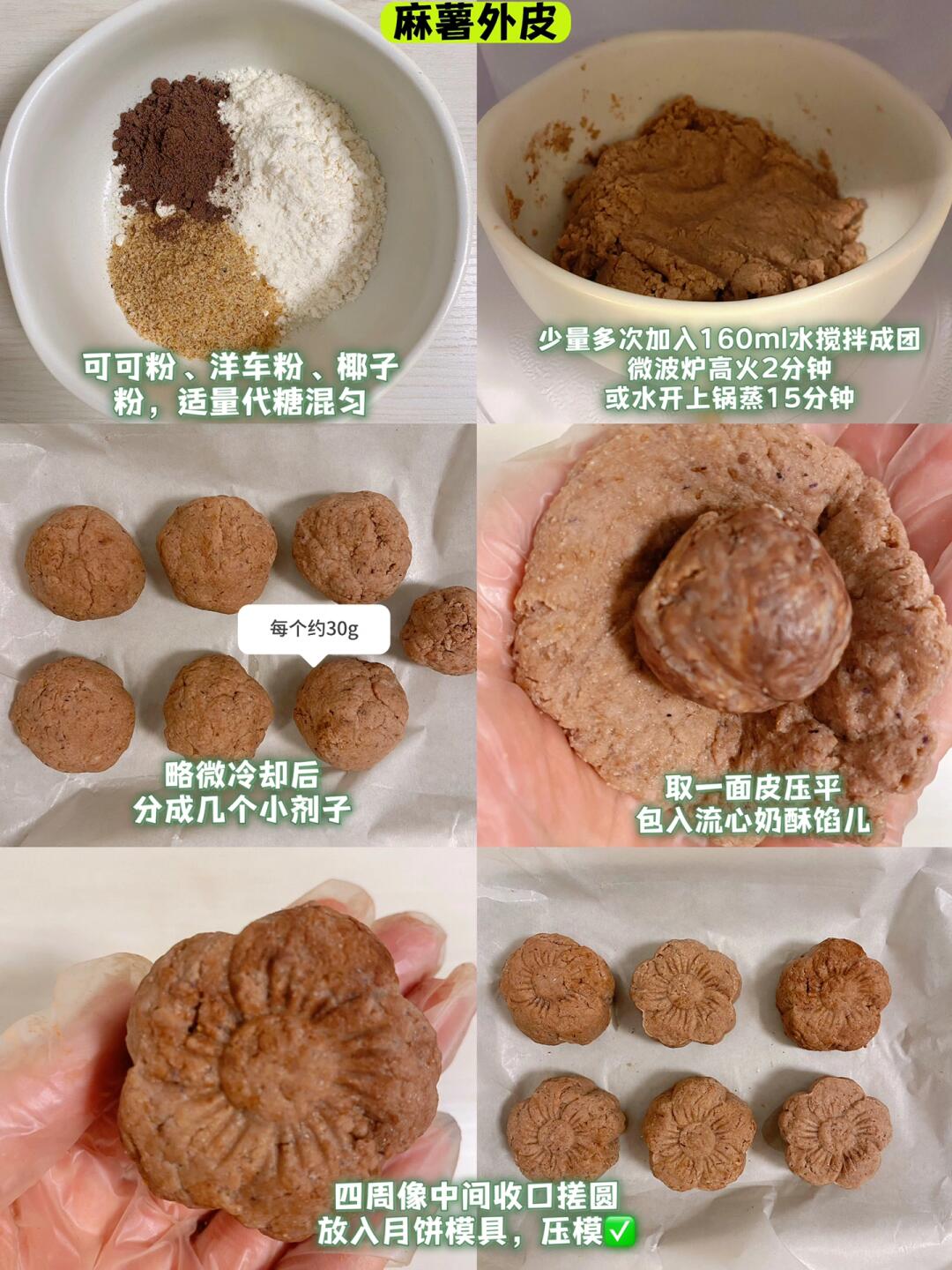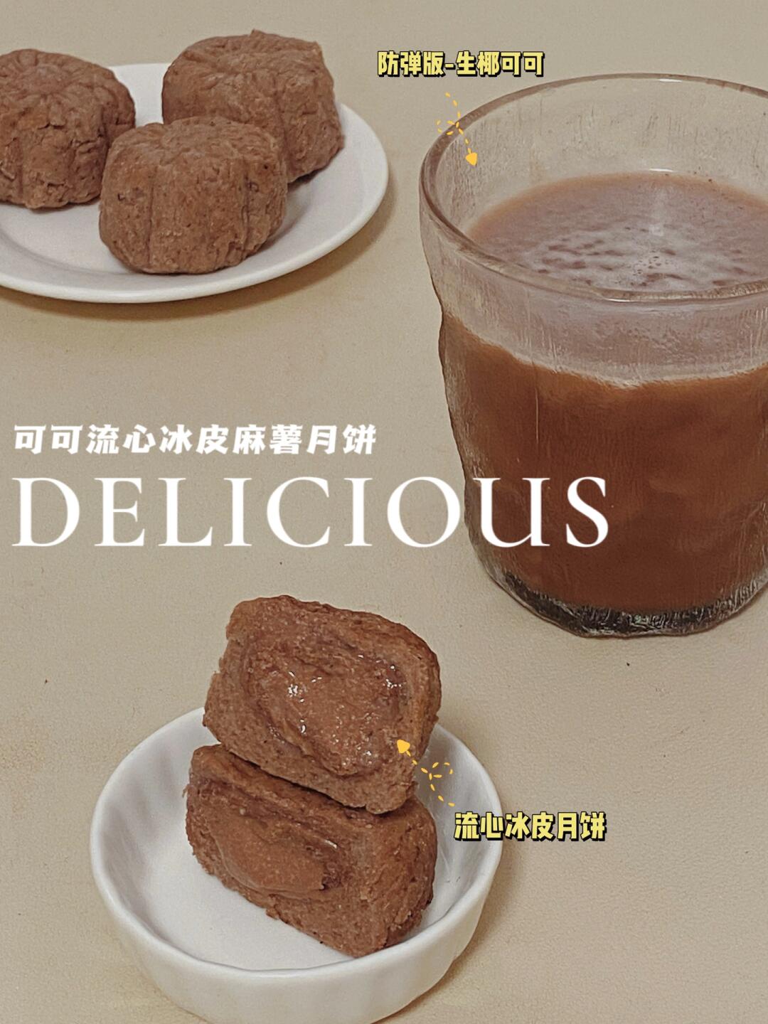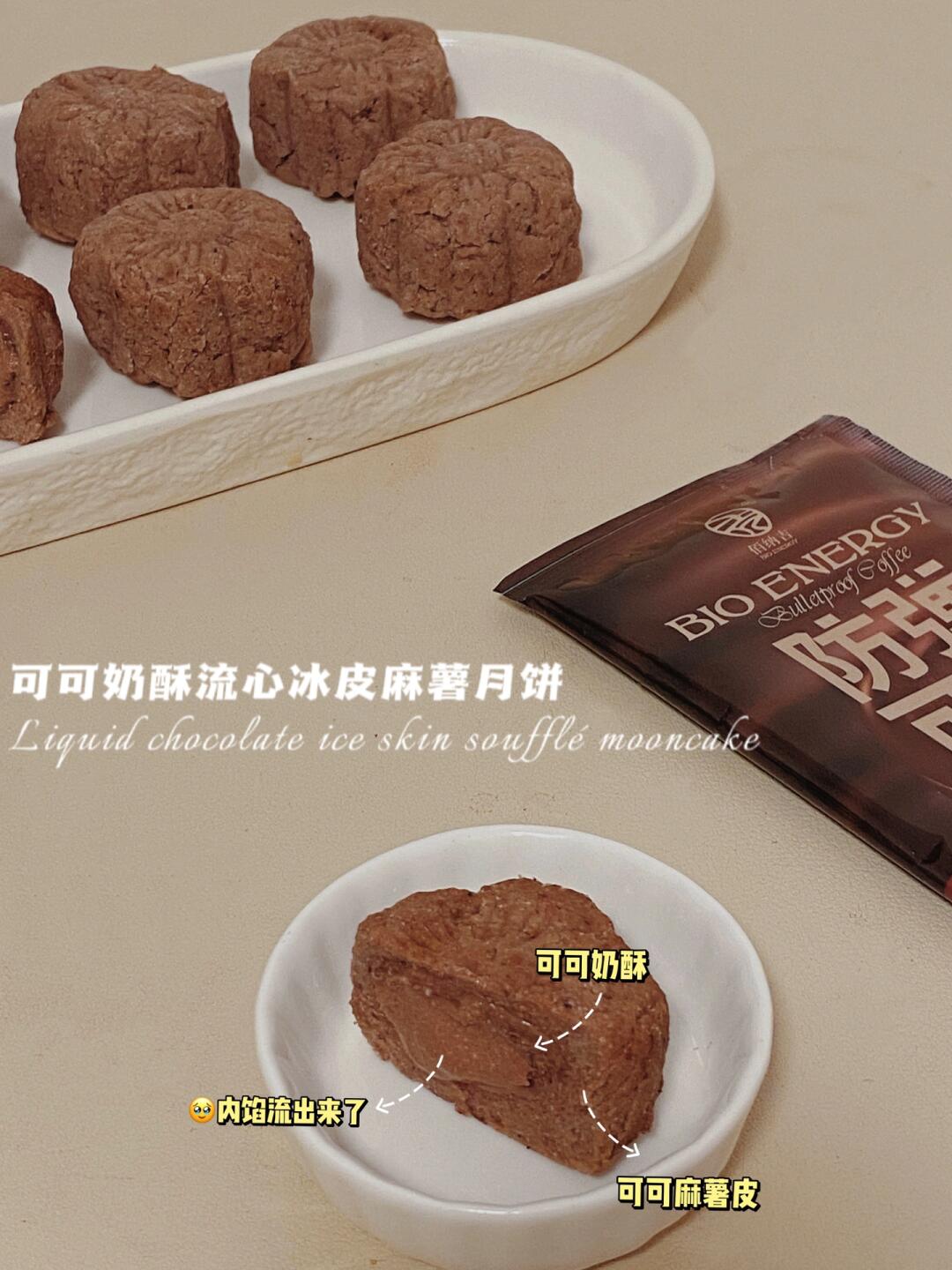 👩🍳吃过了中式月饼,冰皮麻薯月饼,当然不能少‼️关键,无糖无面粉,低碳还免烤,一口还有巧克力流心,这谁顶得住啊‼️(㊙️附低卡流心奶酥馅儿)