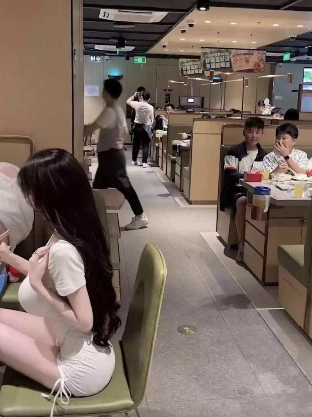 看得出来,那边那两个孩子这顿饭吃得很开心!