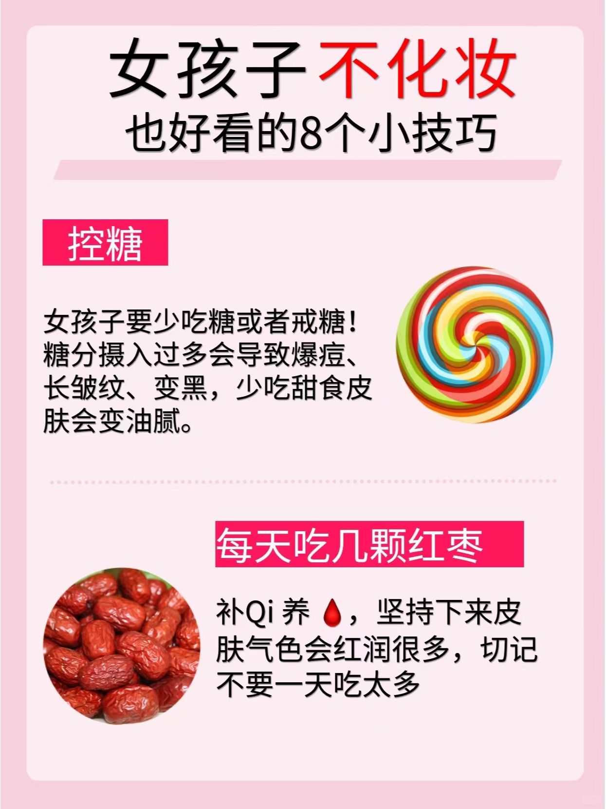 女孩子少吃糖或者戒糖!糖分摄入过多会导致爆痘/长皱纹/变黑,少吃甜食皮肤会变细腻