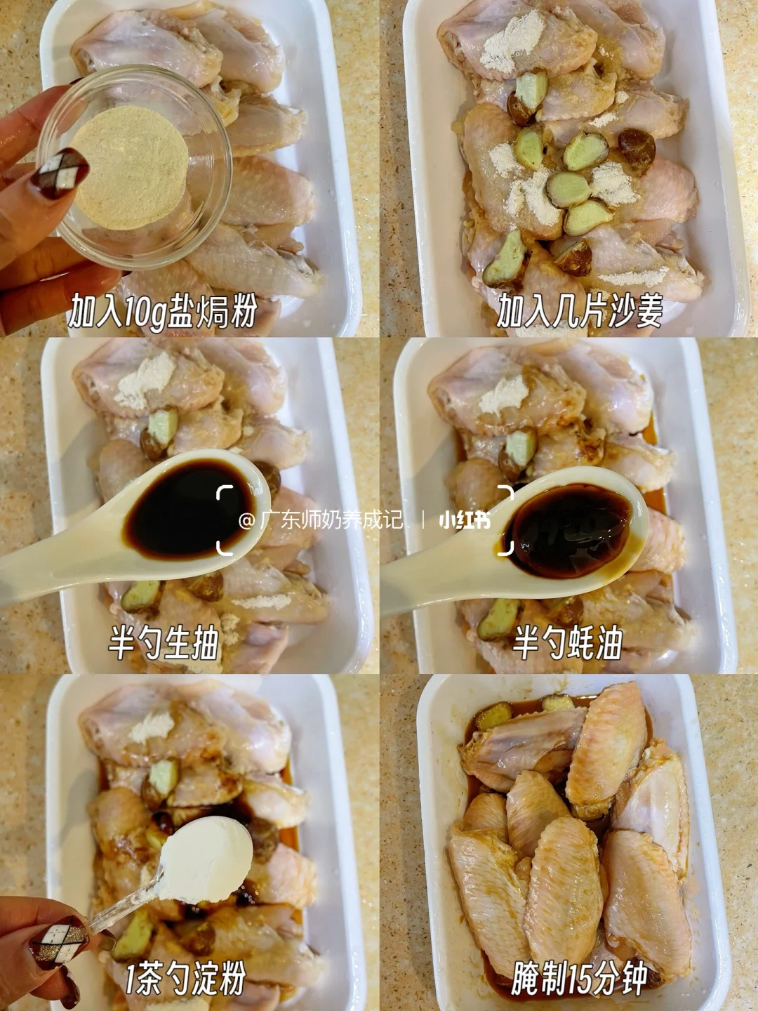 1️⃣鸡翅洗净吸干水分,参考图片腌制