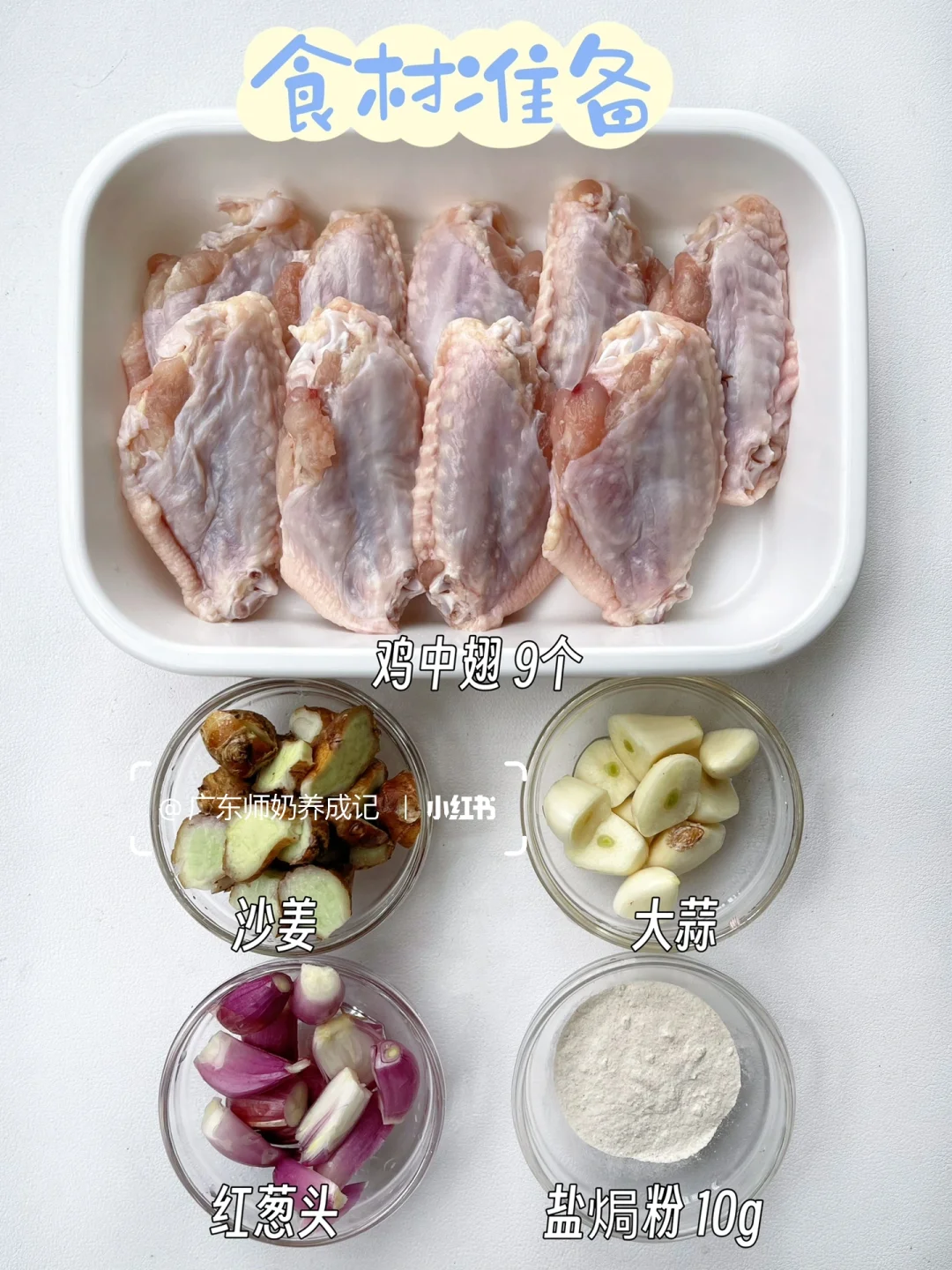 📝【食材】:鸡中翅,沙姜,盐焗粉,红葱头,蒜