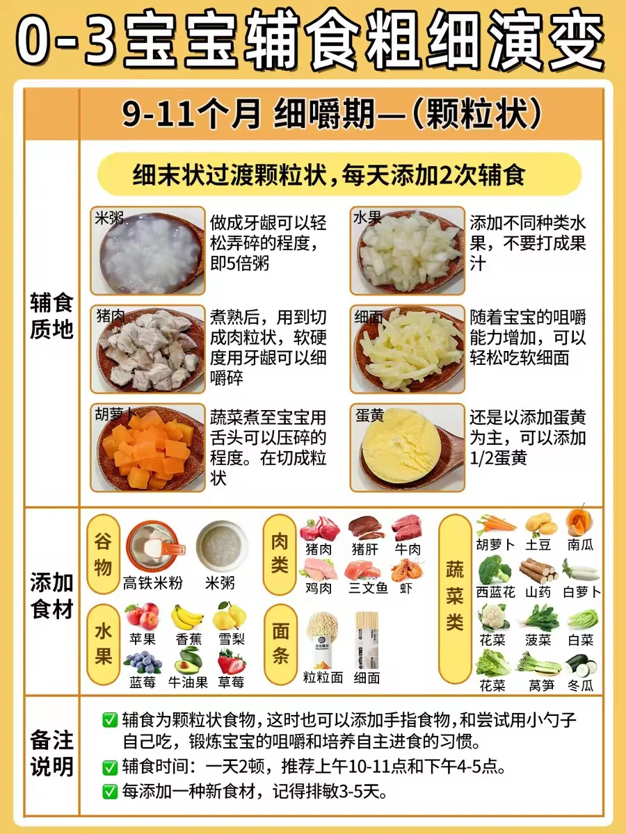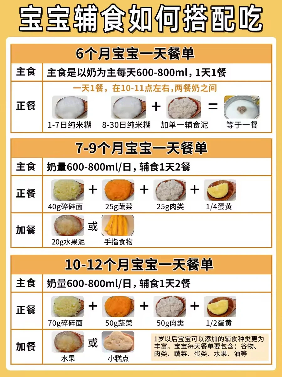 ▫️辅食时间:1天2餐,上午10-11点和下午3-4点