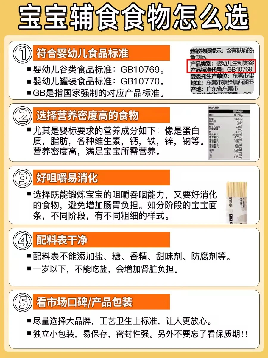 🌈宝宝辅食食物怎么选择?主要看以下5点 :