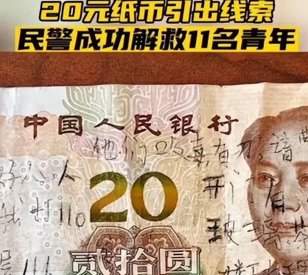 内蒙古包头,一张写满求救信号的20元现金,被在小区玩耍的小孩捡到,随即帮助警察破获一传销组织,并成功救下被困的11人。网友:为机智的小孩点赞。