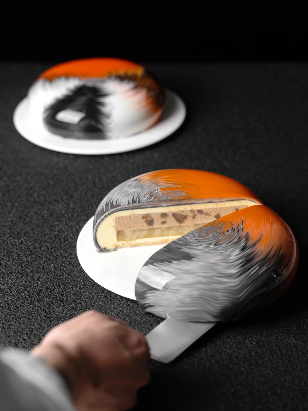 🌟今天分享一款国风淋面蛋糕,寓意为朝霞晕染下的水墨图。