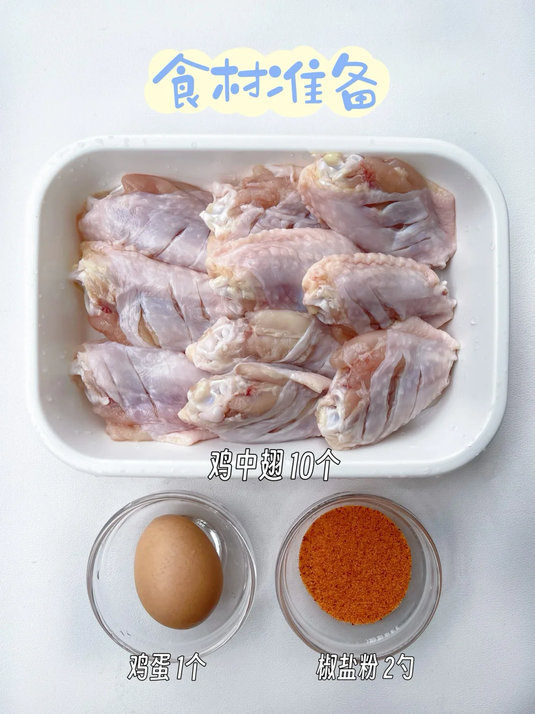 ✏️【食材】:鸡翅,椒盐粉,鸡蛋