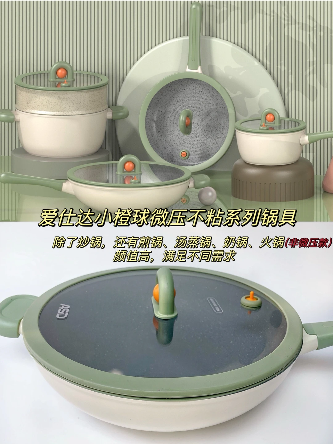今天安利这款新上市的小橙球微压不粘炒锅,具备不粘锅+压力快煮锅的功能,实现煎炒煮一锅搞定❗️有钛不粘技术,平时煎鸡翅,煎牛排完全不粘,清水一冲就干净❗️锅内还能保持微压压强,用来焖煮食材更软烂入味,更省时,真的很赞[赞R],就冲这个小清新的高颜值,就算一天煮三顿心情都美美的[点赞R]