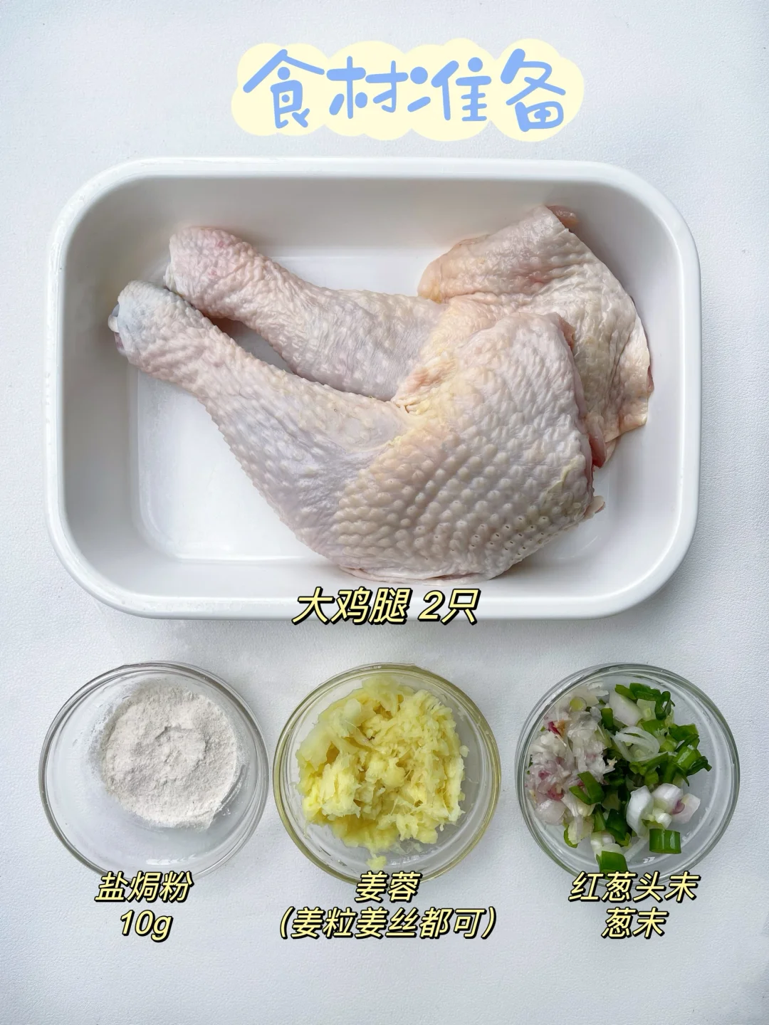 📝【食材】:大鸡腿,姜蓉,葱粒,红葱头末,盐焗粉