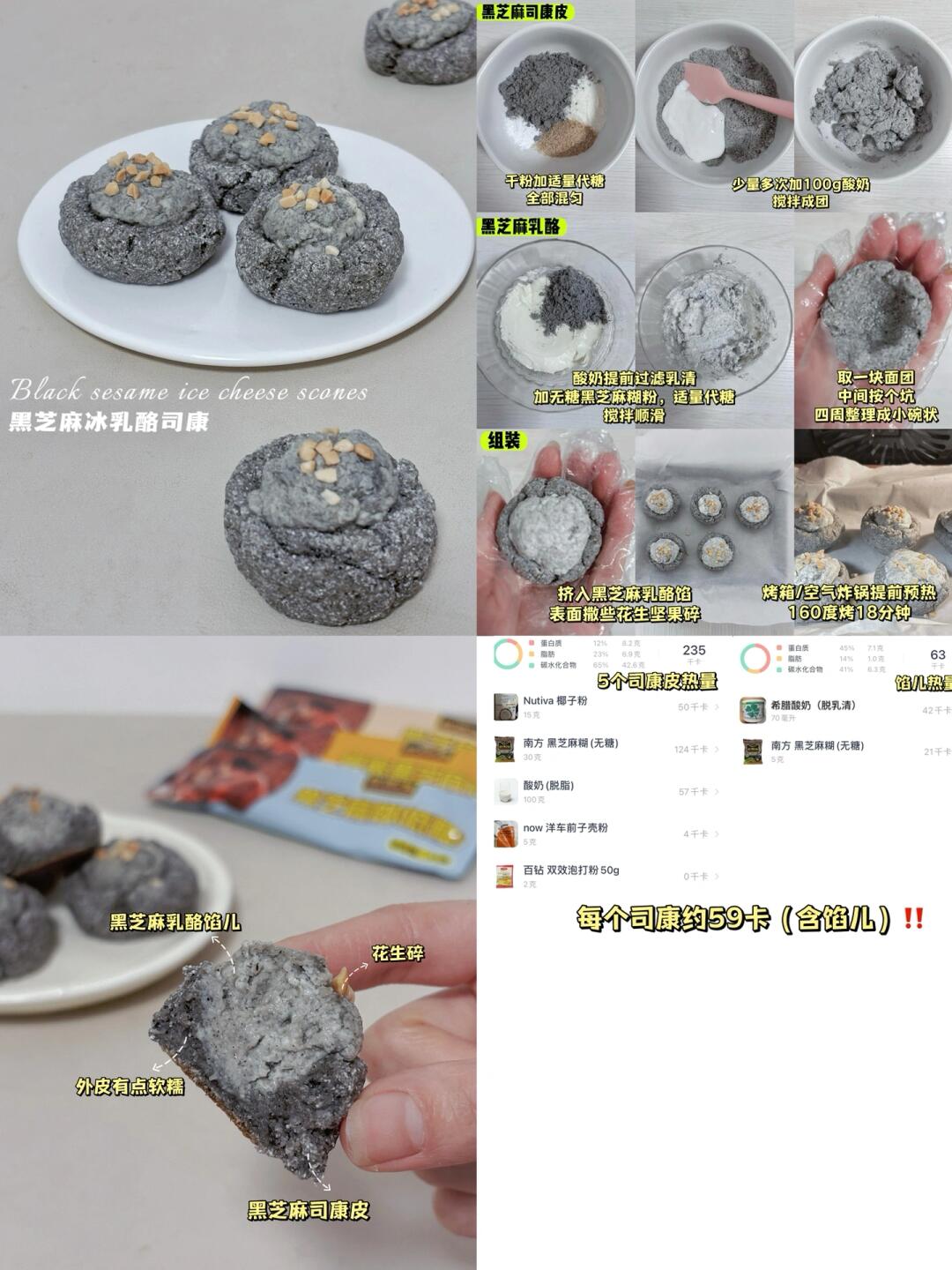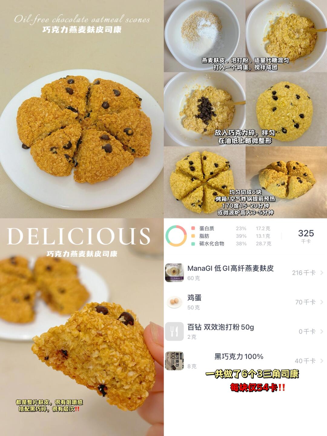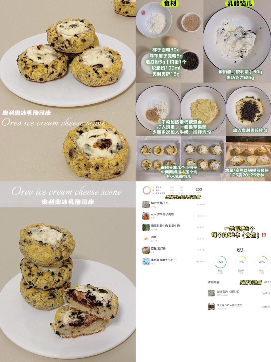 👩‍🍳【无面粉低卡司康】合集 💕无油,无面粉,9种风味,咸甜都有,总有你爱,每款都好吃好做不踩雷 🌈减脂、健身、控糖、低碳、生酮、司康、糕点爱好者都🐴住‼️ . 🔸巧克力燕麦司康(54卡/个) 🔸焦糖司康(37卡/个) 🔸切达奶酪芝士咸司康(36卡/个) 🔸摩卡可可冰乳酪司康(56卡/个) 🔸巧克力千层司康(19卡/个) 🔸桂花豆乳冰乳酪司康(38卡/个) 🔸酷黑抹茶冰乳酪司康(36卡/个) 🔸奥利奥冰乳酪司康(53卡/个) 🔸黑芝麻冰乳酪司康(59卡/个) . 📖简单步骤一看就会,每款都有对应笔记📝 . 食材简单,美味不简单‼️ 无面粉司康,口感更像糕点,咸口yyds,冰乳酪款冷藏风味更佳~很适合做新年聚会的健康糕点~ 🌈姐妹们都要多吃不胖!