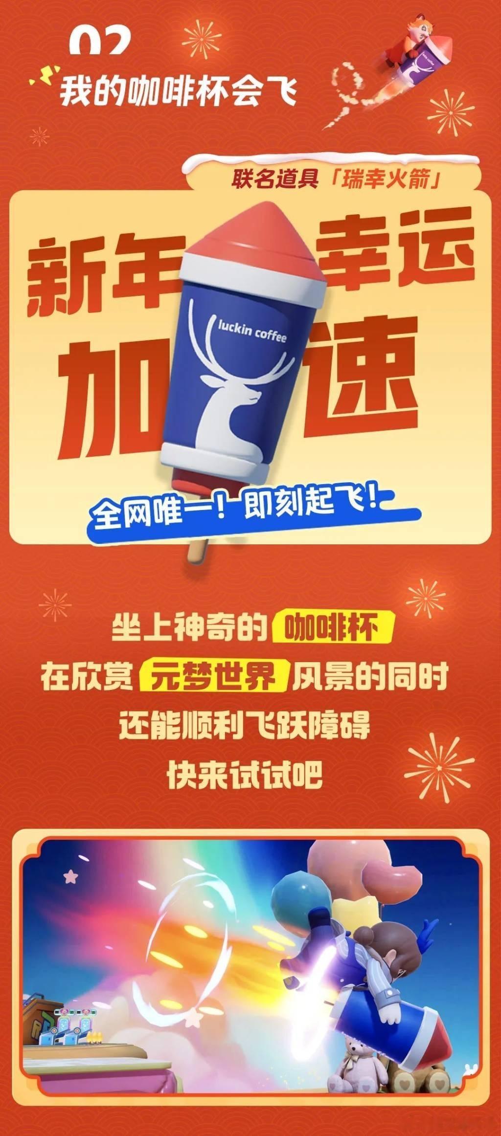 #元梦里开了家咖啡厅# 今天打开元梦,就发现瑞幸咖啡居然把分店开到去了元梦里[doge][doge] ,而且居然还有瑞幸咖啡专属地图——「新年瑞一下」,跑几圈下来好意头满满,感觉咱这新的一年绝对的顺风顺水事事顺~还有还有,连登三天就送咖啡师小瑞皮肤,打卡元梦里的瑞幸咖啡还能送优惠券,这一波必须给元梦和瑞幸都来个一百分~![打call] [打call]