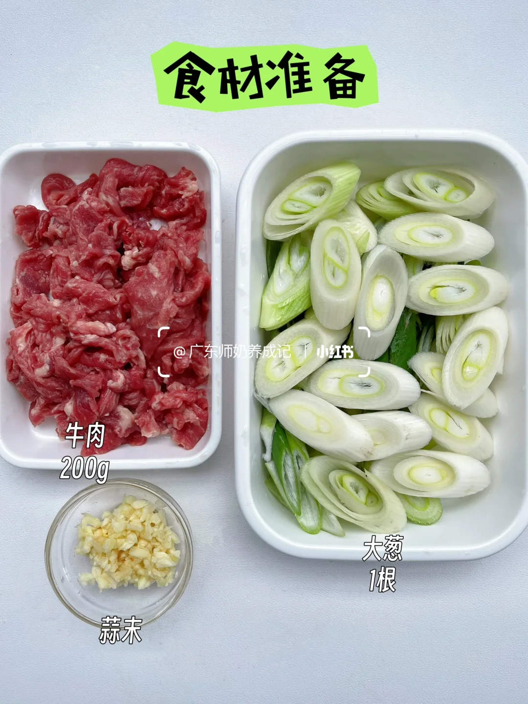 📝【食材】:牛肉200g,大葱1根,蒜末