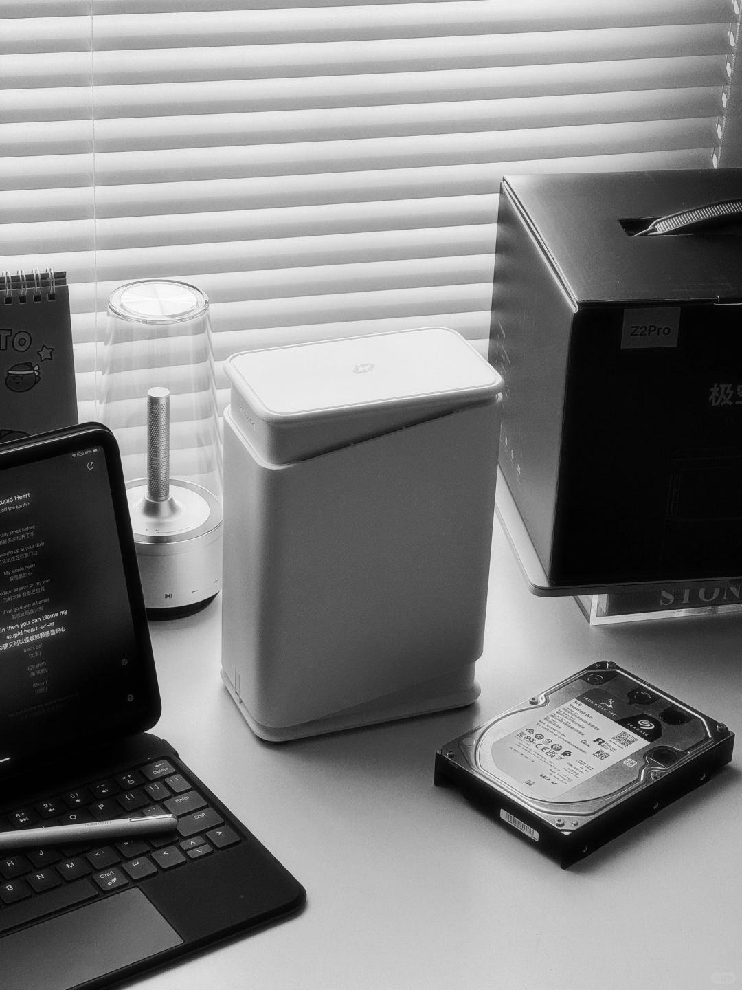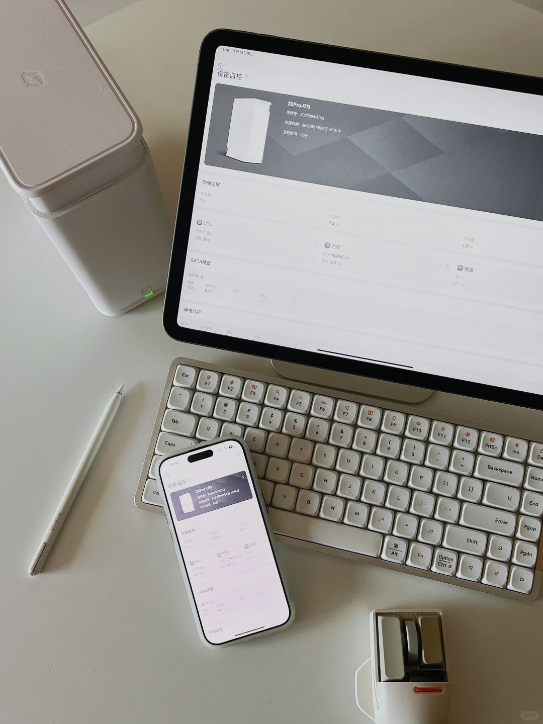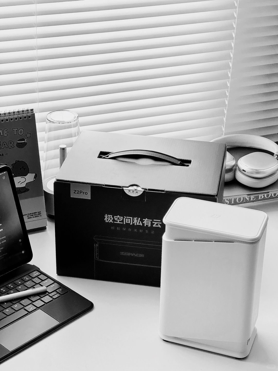 极空间Z2Pro白色很ins风,摆在书桌也是极简!支持双硬盘,用手机或者电脑app操作所见即所得。