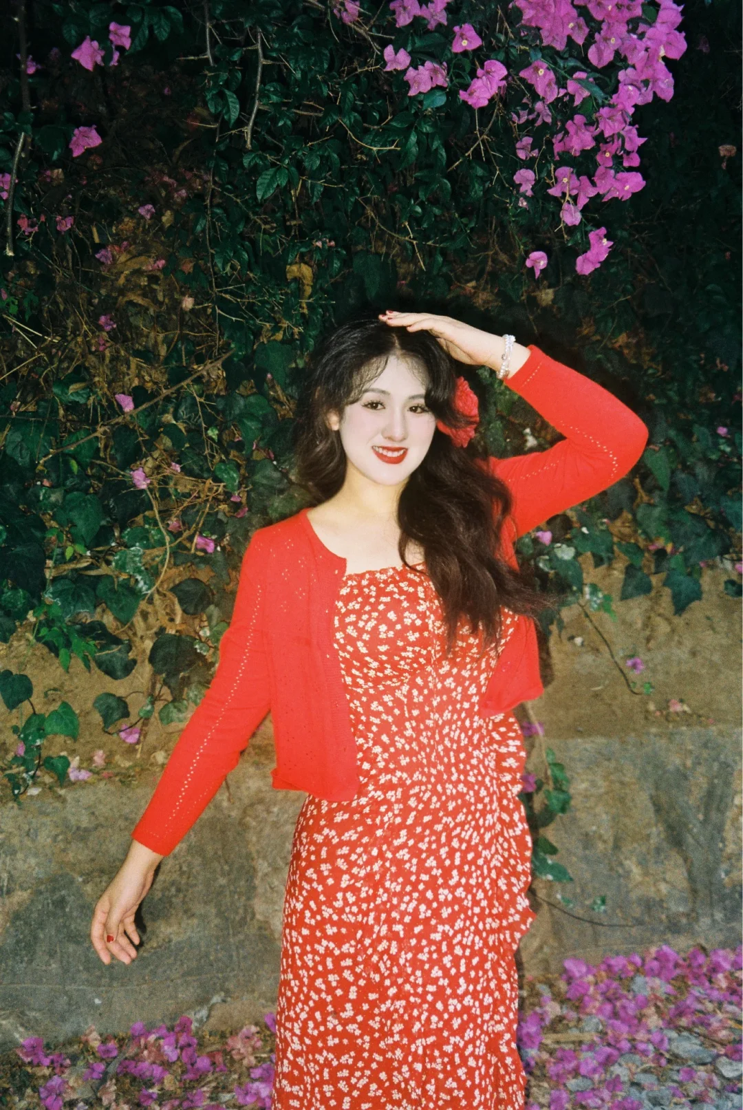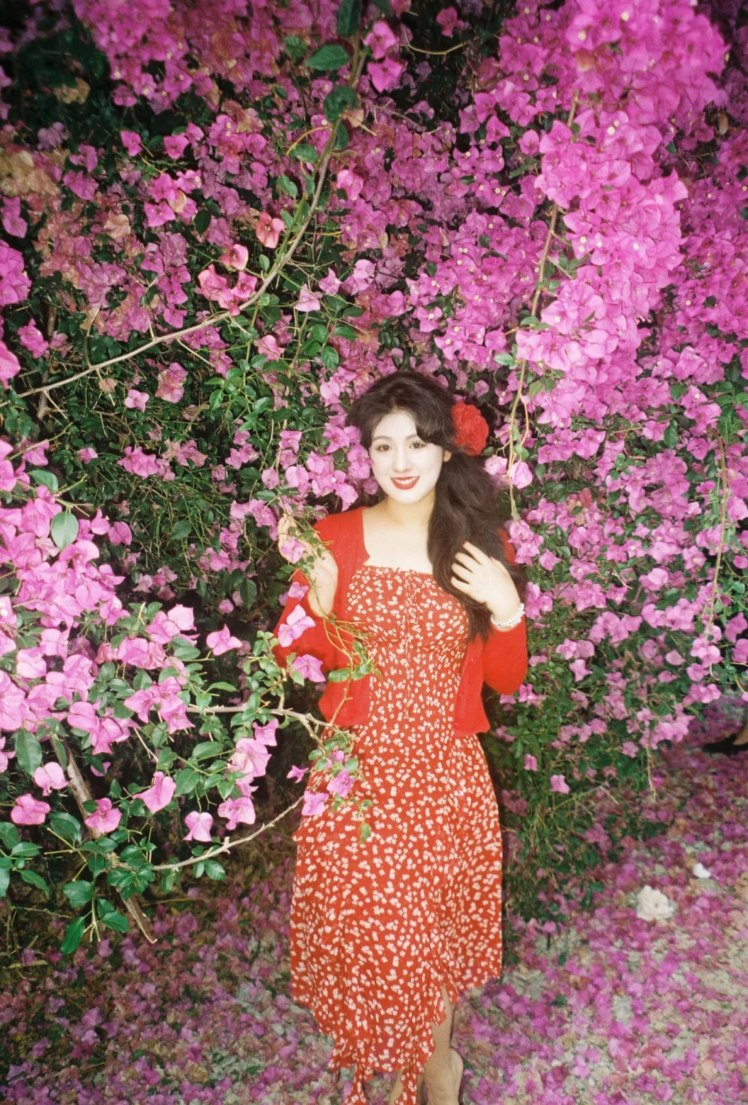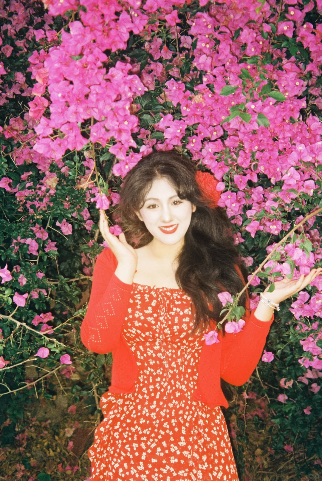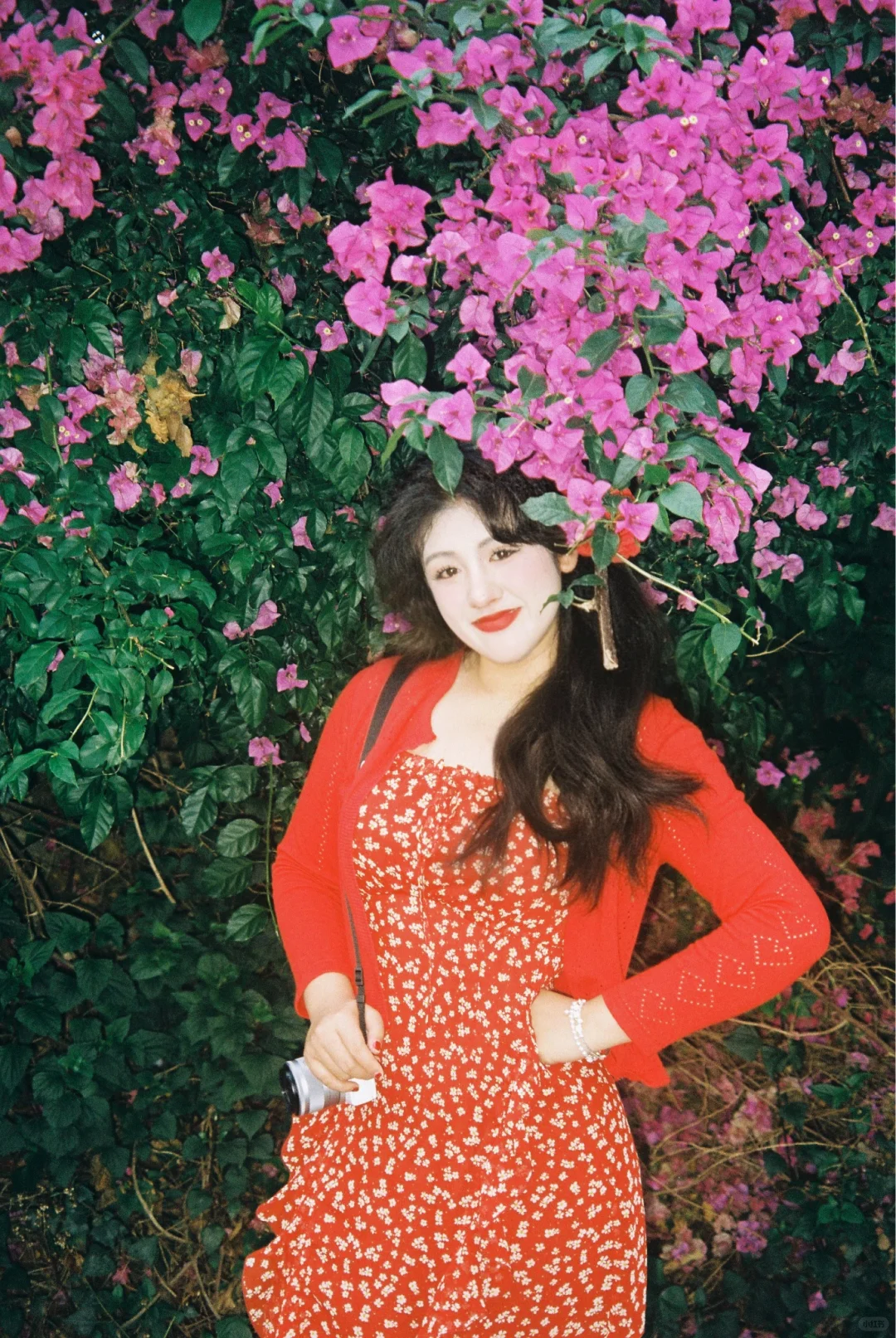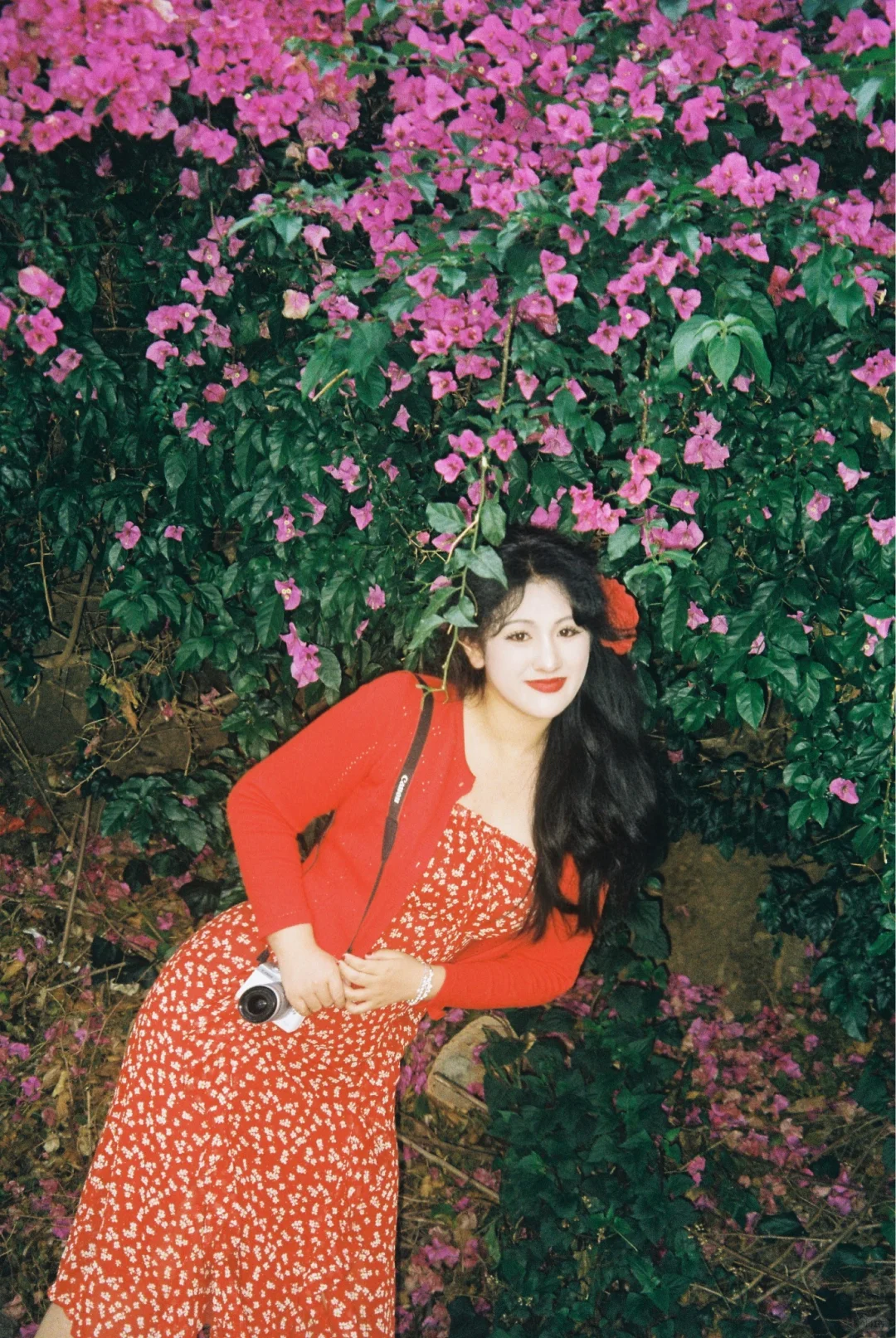 和喜欢的花花拍照啦📷 红👗显白别太美了 ~