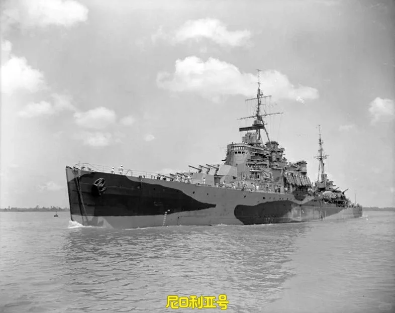 斐济级是英国皇家海军于第二次伦敦海军条约生效后建造的一型轻巡洋舰,为了满足条约要求,将标准排水量限定在8千吨,为此减小了舰体。该级舰长169.3米,满载排水量1.07万吨,最大航速31.5节,装备12门6英寸主炮。该级舰均以英国殖民地命名,因此也被称为殖民地级。