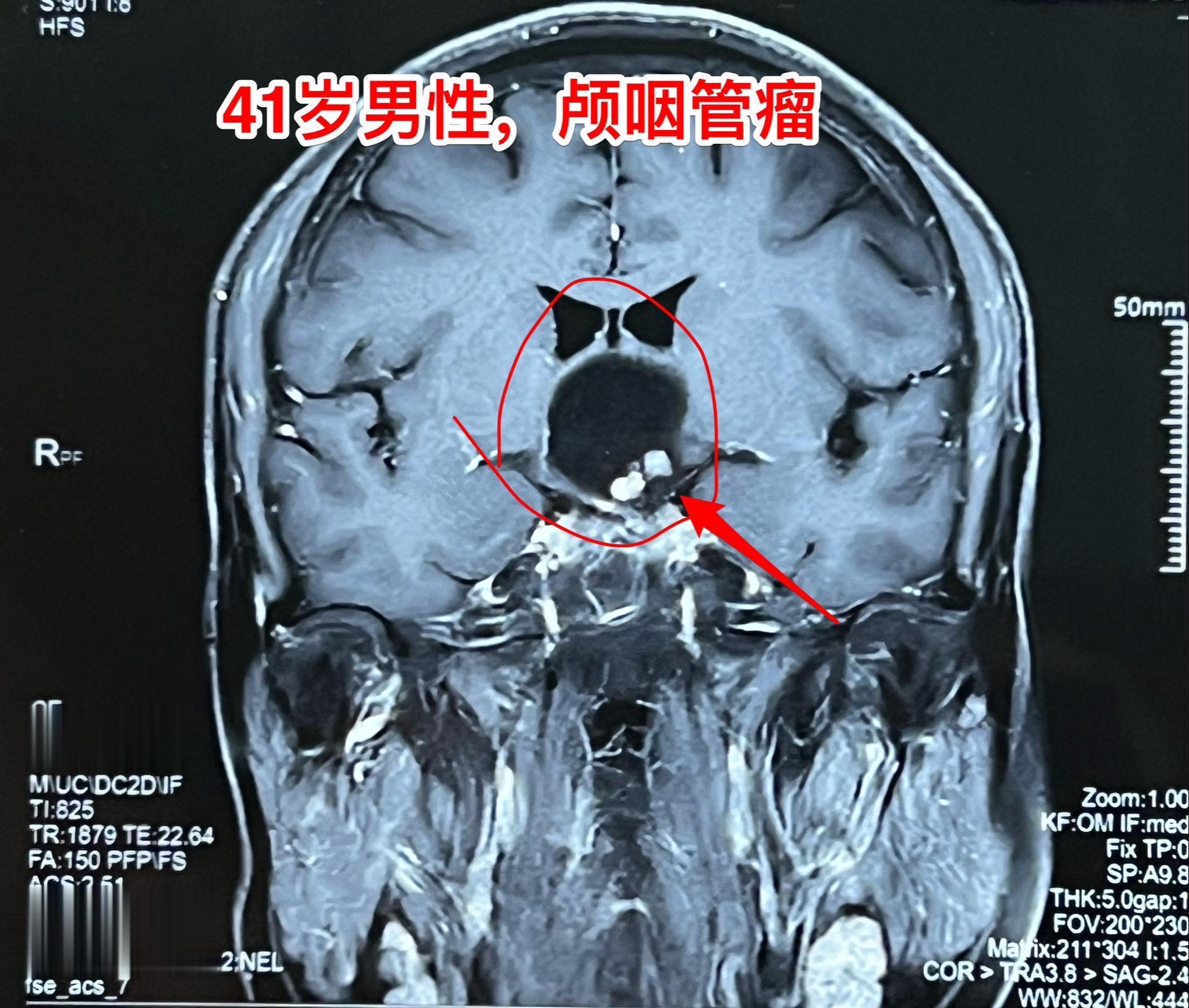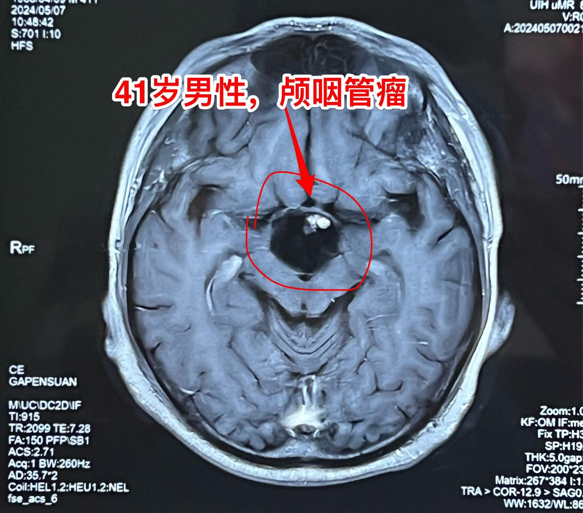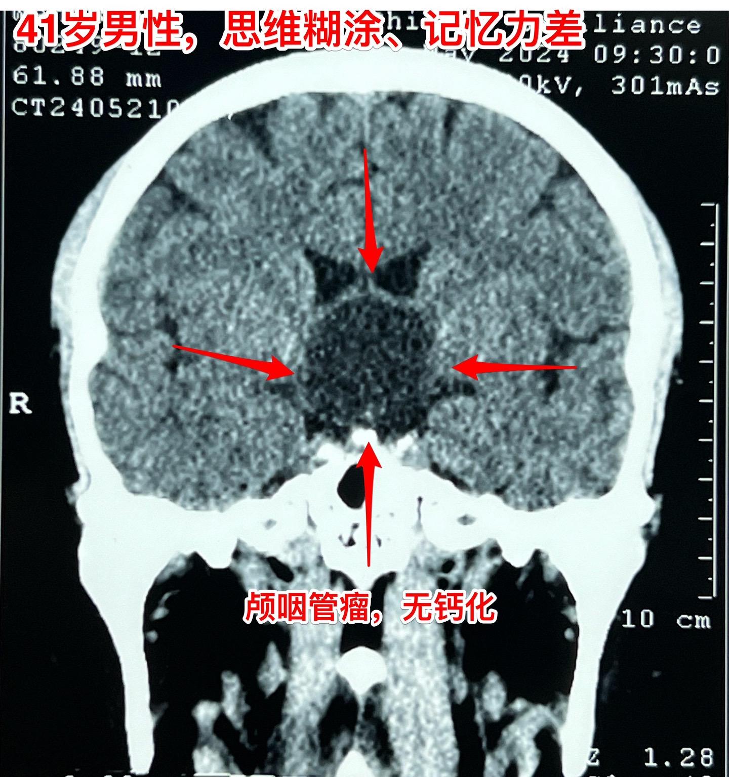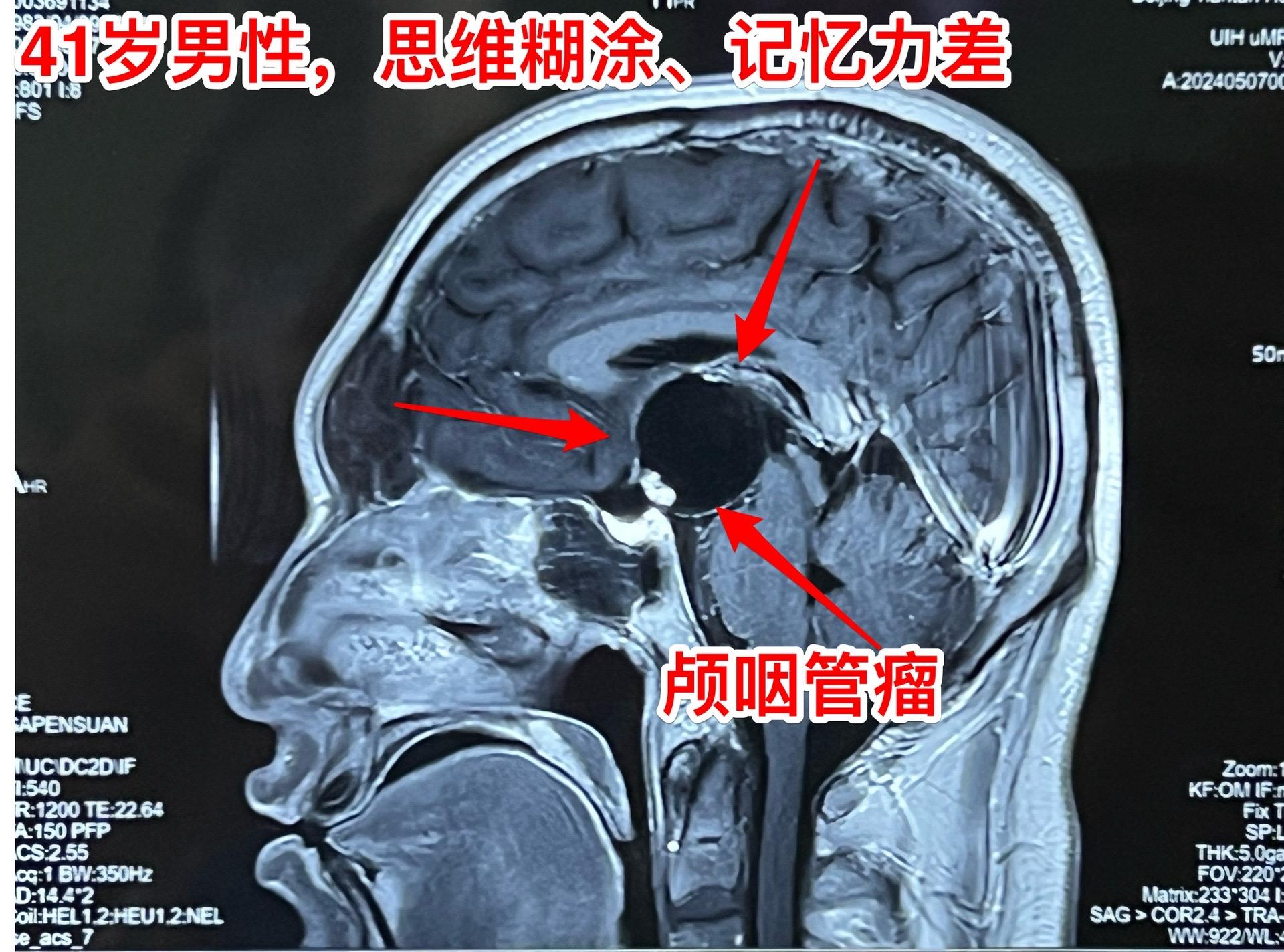 5月31日的颅咽管瘤手术。41岁山西男性,因思维糊涂、记忆力差发现鞍区肿瘤,为乳头型颅咽管瘤。
