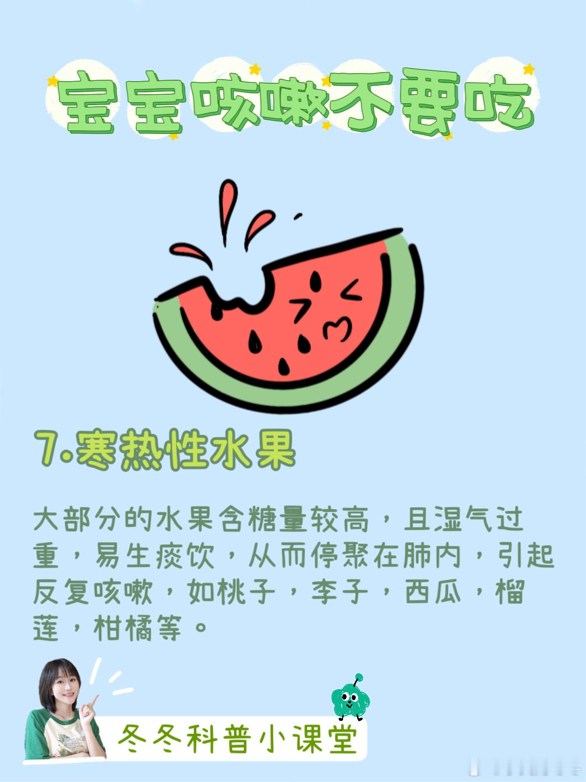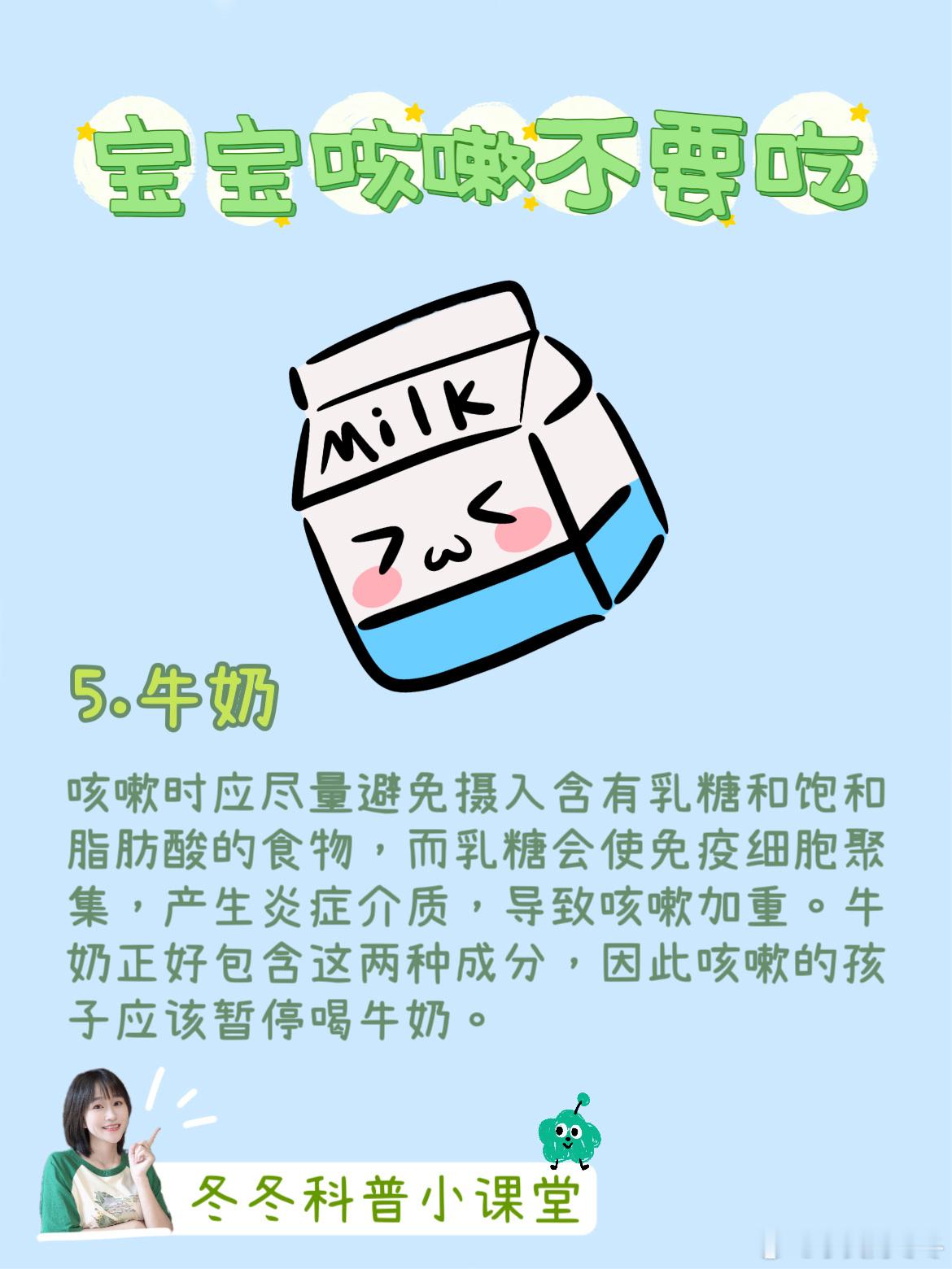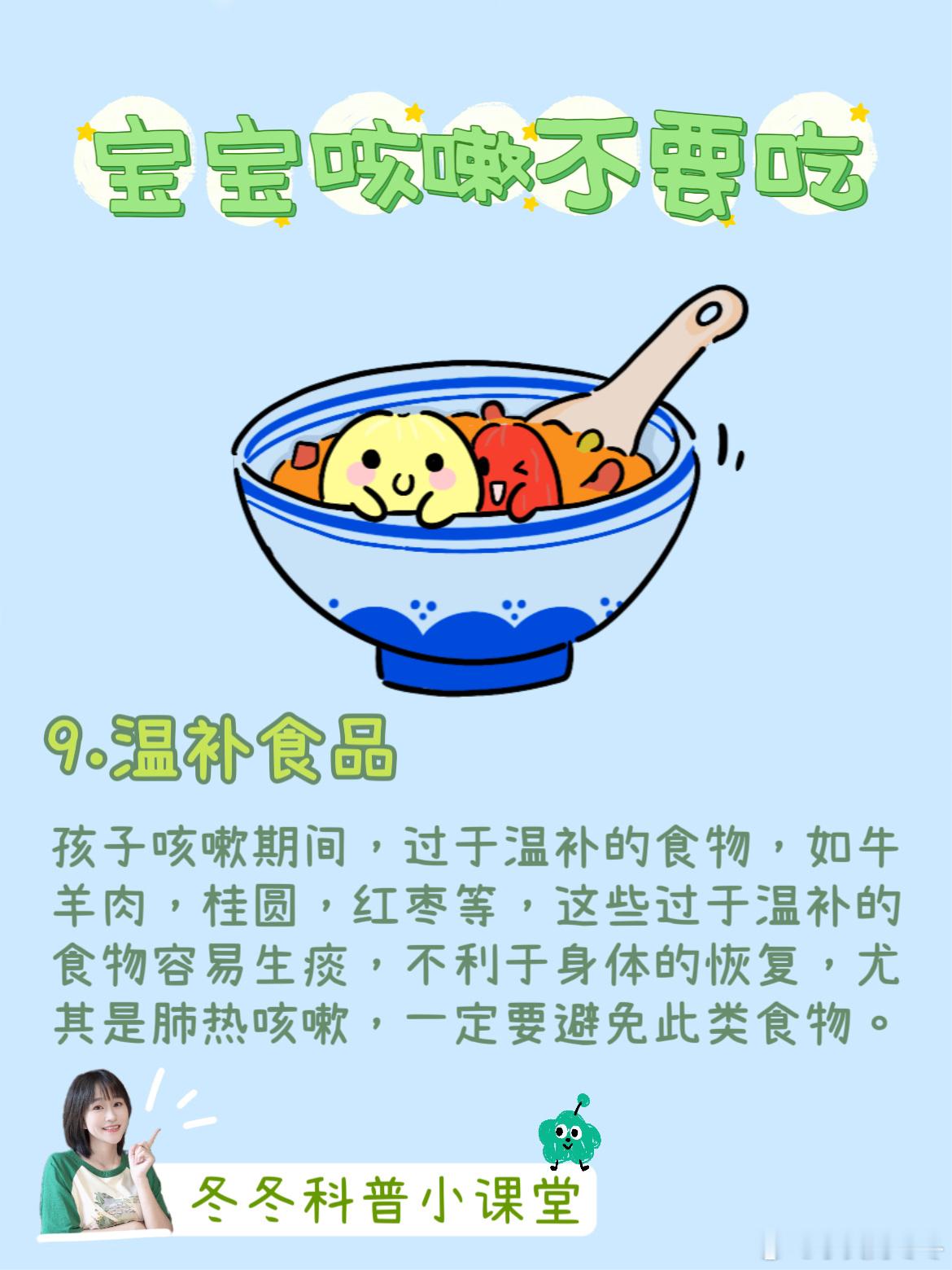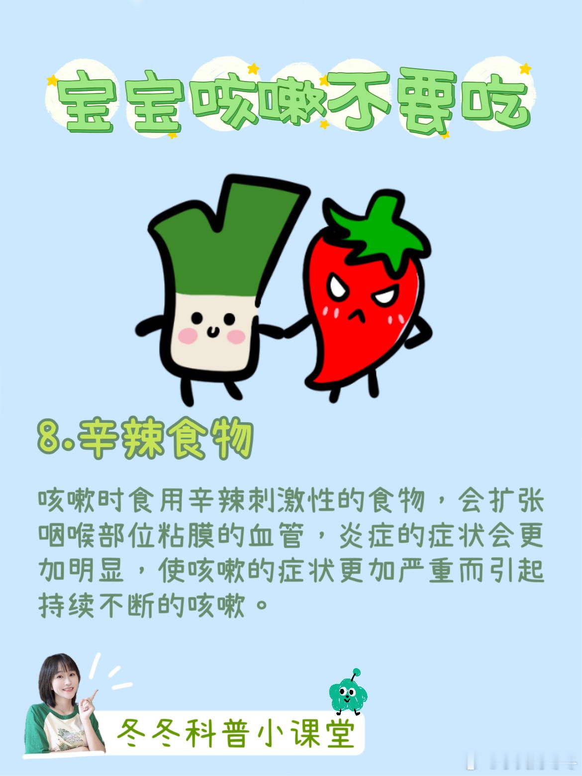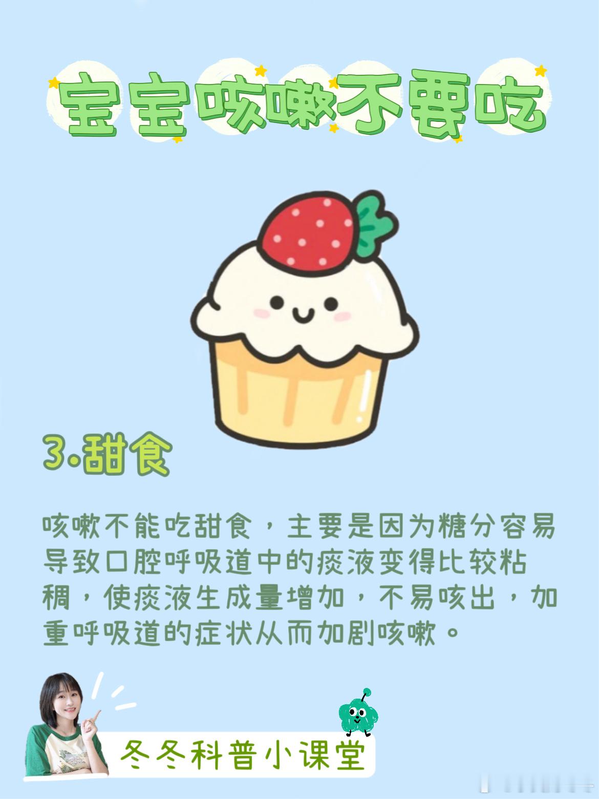 宝宝咳起来一声比一声更让人揪心😥😥想要咳咳快点好起来,除了吃止咳药,该忌口的也是一样都不能少,相信很多人也试过这种情况——吃药没吃错东西灵,一不小心就又咳得厉害了[苦涩][苦涩][苦涩] 快收藏起这份咳嗽不能吃大全,以防不时之需~#臭宝硬控我30秒##育儿聊一聊##宝贝成长守护计划#