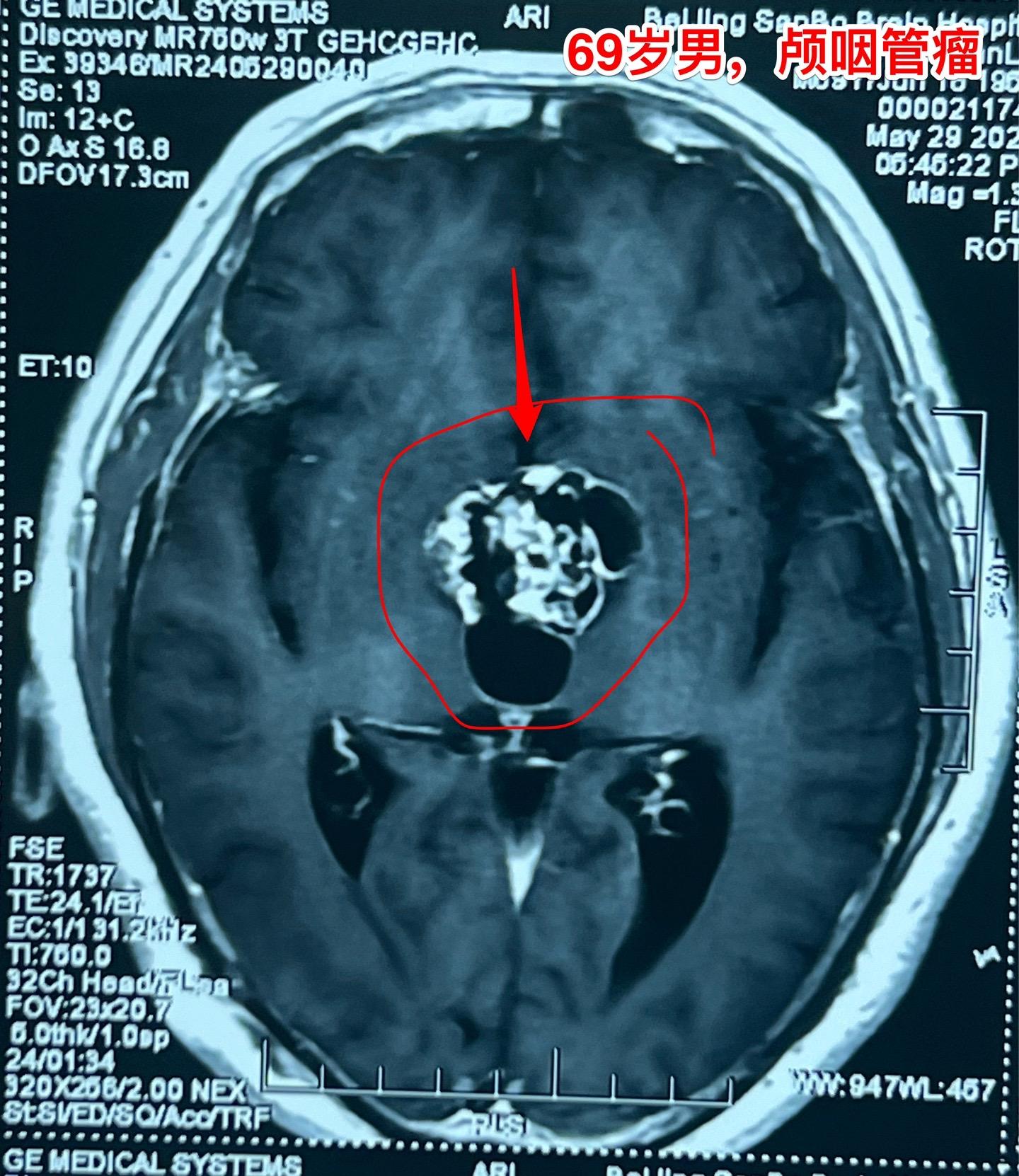 但是老人的身体很虚弱。还不能下地行走。这样的身体状态是不能承受切除颅咽管瘤这样的大手术的。
