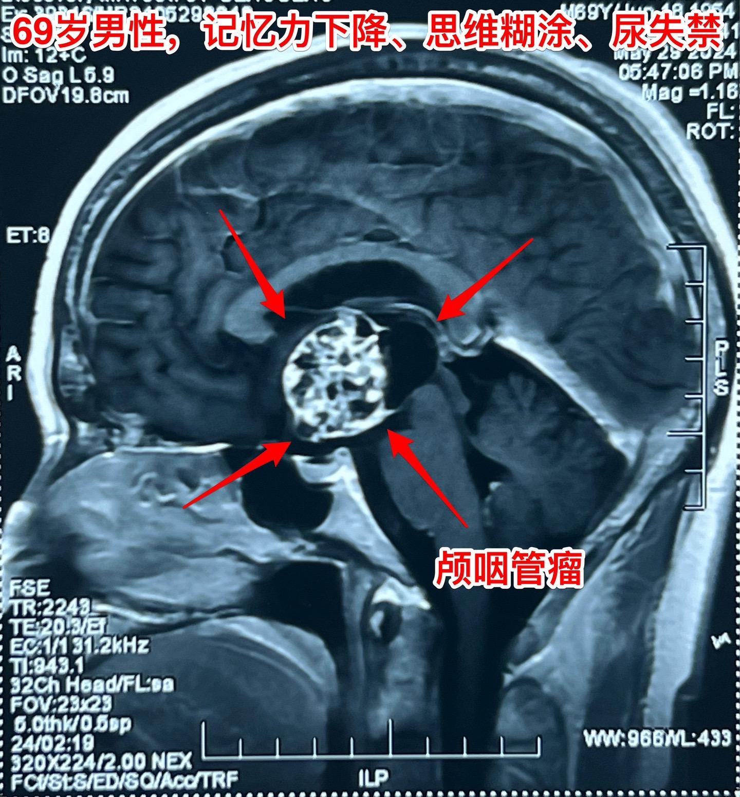 69岁发现颅咽管瘤还能作手术吗?69岁的南通市老人近半年出现记忆力差、糊涂。4月份出现尿失禁,到医院检查才发现病根儿是颅咽管瘤,肿瘤体积大,导致了脑积水。第一步在当地医院先作了脑室-腹腔分流术,治疗脑积水,尿失禁的症状有改善。